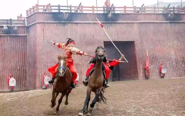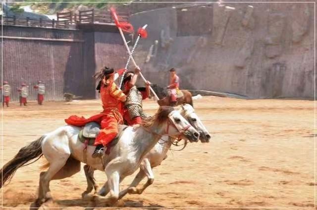 当天晚上,马亓山下火把通明,两杆帅旗被风吹得哗哗作响,两支队伍的士兵们手持大刀、长枪,排成两个半月形,把各自的首领围在中间,真可谓众星拱月。只见这边“杨”字旗下有一名美而不娇的妙龄女子,她身裹红装,手持梨花枪,胯下玉麒麟,显得格外威武俊秀;那边“李”字旗下有一位身材魁梧、虎背豹眼的英俊青年,胯下枣红马,掌中镔铁枪,威风凛凛,相貌堂堂,这两人就是杨妙真和李全。二人一打照面,立刻让对方吸引住了,虽说彼此心中早有爱慕之情,但没想到对方如此英俊潇洒,顿感一见钟情,相见恨晚。二人都是豪爽之人,又是血气方刚,心里既使一百二十个乐意也得马上见功夫,枪下论输赢。彼此通报了姓名,立即马打盘旋,展开厮杀,只见演武场上尘土飞扬,枪影翻飞,杀声阵阵,喝彩连连,真是棋逢对手,将遇良才,云中龙遇着雾中龙,上山虎遇着下山虎,二人大战三百回合,不分胜负。双方士兵摇旗呐喊,擂鼓助威,杨妙真越战越勇,李全也精神抖擞,眼看天亮了,仍然是难分难解。不知是天意使然,还是杨妙真故意为之,她的坐骑突然马失前蹄,一个趔趄,眼看杨妙真就要跌落马下,说时迟,那时快,李全一催战马,枪挂马蹬,纵身飞起,两手相托,牢牢地接住了杨妙真正在跌落的娇躯,她一身娇嗔,妥妥地跌落进李全铁塔般的胸怀,全场一片欢呼……