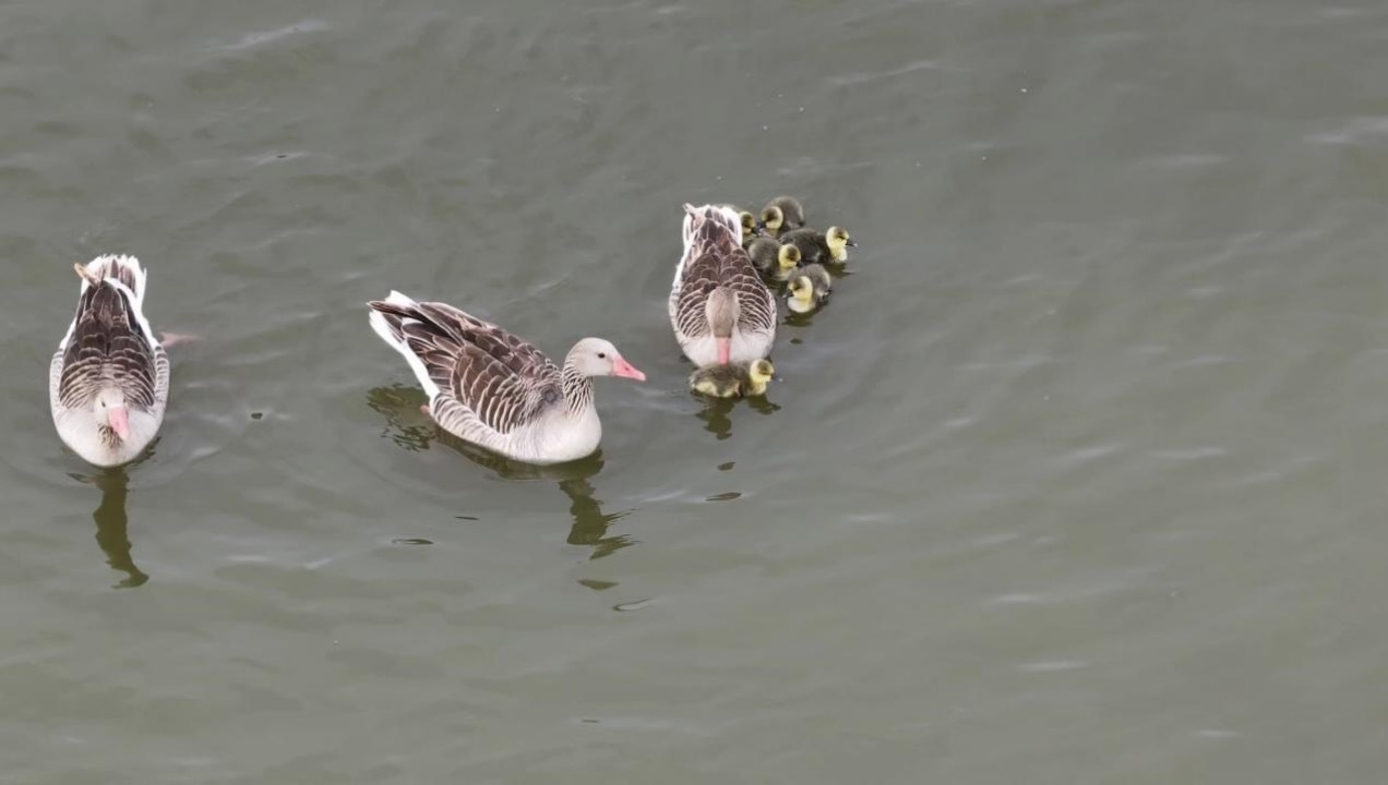 南大港湿地中的灰雁及其幼鸟。宋文峰 摄