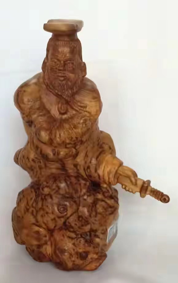 作品以荆棵根的自然形态,雕刻出王莽紧皱眉头,一手握拳,一手握剑,立志推行改革而又不顺的情形。