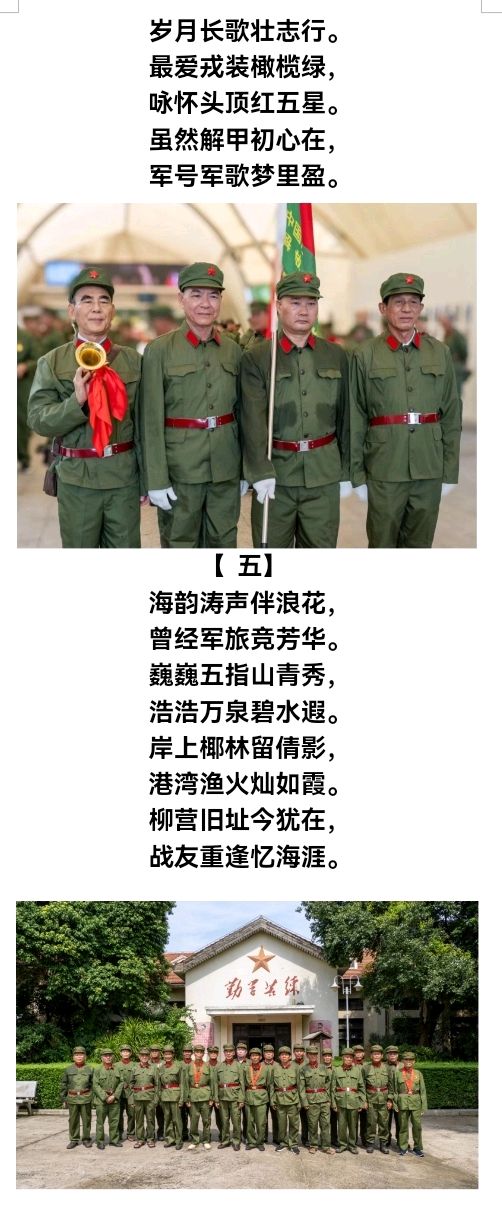 出生于四十年代末,参军于六十年代中,转业于八十年代初,现已退休。本人热爱古典文学,喜欢习研诗词韵律,练笔之作曾在《诗文学报》、《红烛诗刊》及《美篇》发表诗词1000 余首,著有《椰韵吟集》(已出版,国家图书馆有收藏)。2023年写歌词《三沙的北京路》在北京头条、腾迅、QQ音乐等网络平台发表。