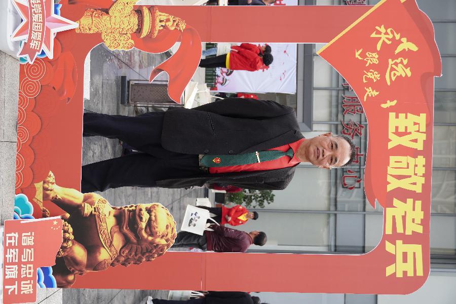 上午8点半,老兵们陆续前来签到,志愿者现场分发“致敬老兵”文化衫。虽已入秋,老兵们依旧兴致勃勃地穿起短袖,纷纷在“致敬老兵”宣传立牌前拍照打卡。