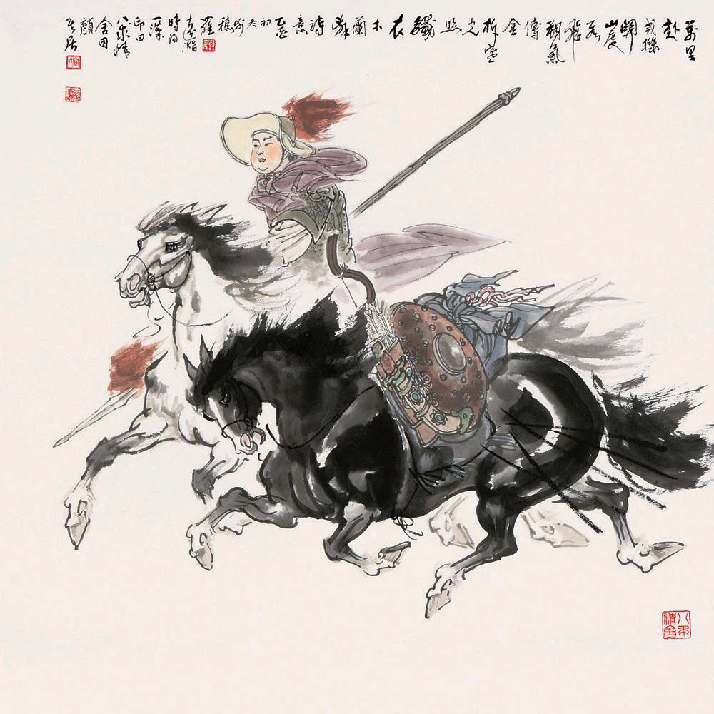 创作于南北朝时期的长篇叙事诗《木兰辞》,记述了木兰女扮男装,代父从军,征战沙埸,凯旋回朝,建功受封,辞官还家的故事,塑造了一位不朽的人物形象,既富有传奇色彩,又真切动人。