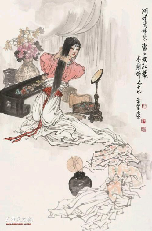 这首诗以“木兰是女郎"为题旨构思行文,含不尽之意于言外,通过动作细节的描写来刻画人物的心理动态。其文辞的繁简安排极具匠心,虽然写的是战争题材,但着墨较多的却是生活场景和儿女情态,富有浓厚的生活气息。