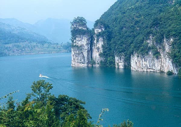 峭壁根悬藤绕树,惊船尾立棹翻花。