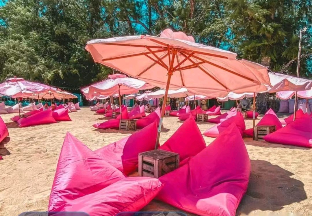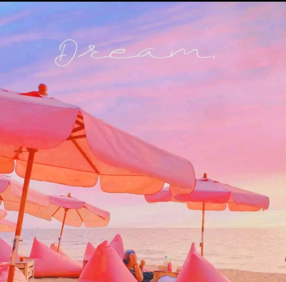 碧海蓝天映眼眸,芭提雅岸粉色幽。