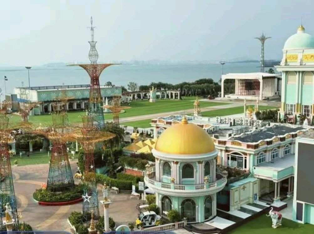 金碧辉煌映蓝天,泰国豪宅显宏现。
