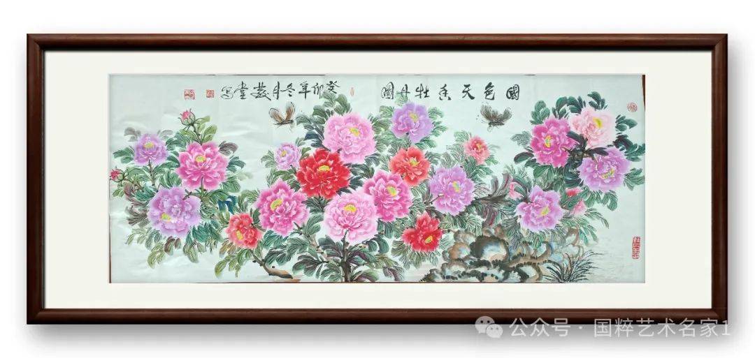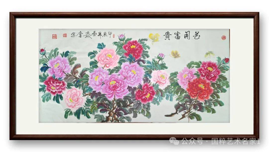 在张发堂笔下,牡丹或大或小、或繁或简、或浓或淡,有着一种自然之美、一种韵律之美、一种节奏之美、一种色彩之美;从精神到境界,从立意到构图,从笔墨技法到情趣格调,都有新的创造,体现了水墨画的丰富变化,也显示了画家心随笔走、胸藏丘壑的艺术水准。他画牡丹应该说早已到了出神入化的境地。