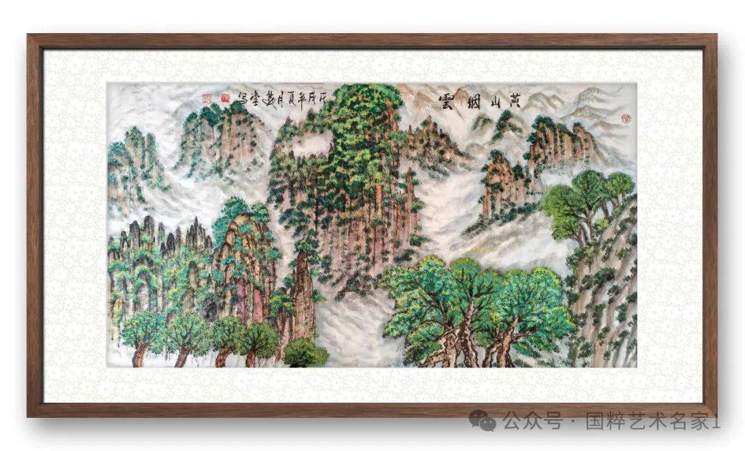张发堂画中山必有水,水上必有云雾的缭绕。山,亘古不变的恒定;云,瞬息万变的灵动;水,奔腾不息的涌动。形成一个激荡人心、动人心魄的画面。他的画面中,远近虚实,疏密开合,都能妙手偶成,一派静、净、敬之相,还有诸多其他的独特的技法语言及其语用方式。他注重深入自然山川观察、感应,进而结合外在自然实有物象,揣摩、研究、探索、提炼,升华成既不离传统,又属自家风貌的独特的技法语言形态。