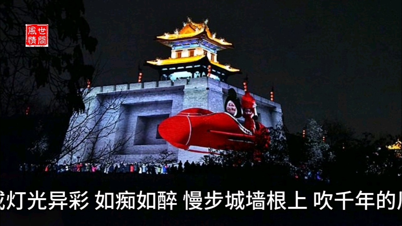且看城内,楼阁亭台,错落有致;廊庑殿宇,金碧辉煌。大街小巷,车水马龙;茶楼酒肆,鳞次栉比。曲江池畔,花团锦簇,柳丝拂面;乐游原上,夕阳西下,红霞满天,华灯初上,暮鼓晨钟,惊醒多少名利客。徘徊古城墙上,霓红入目,眺望高楼大厦,如雨后春笋,如剑似戟,或直插云霄,或起伏跌宕,或灯光异彩,如痴如醉,慢步城墙根上,吹千年的风,赏一轮玉盘,看疏影摇曳,听一曲秦腔,叠一只纸鹤,载着永恒眷恋,放飞梦想。