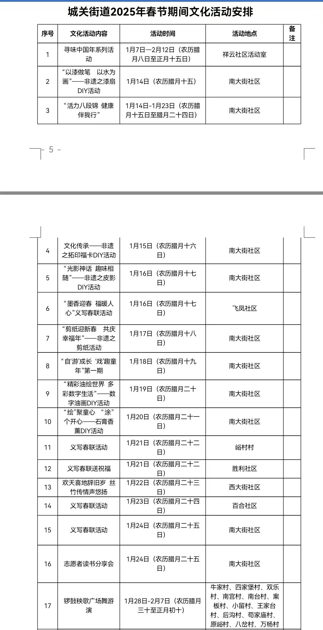 15.2025年1月25日—2月13日(农历腊月二十六日至正月十六日)各镇(街)各部门、各单位门前悬挂灯笼,营造文明祥和的春节氛围。