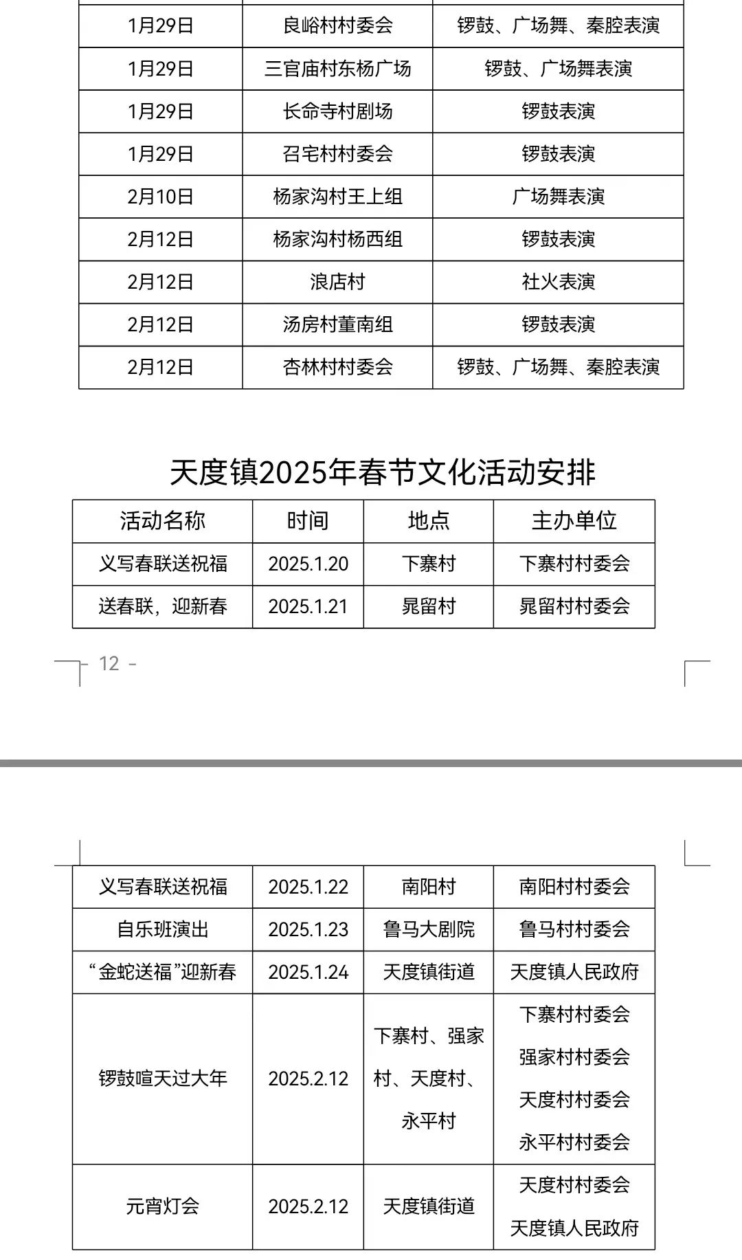 3.2025年2月11日—12日(农历正月十四日至十五日)上午,举办扶风县迎新春锣鼓秧歌社火游演活动。