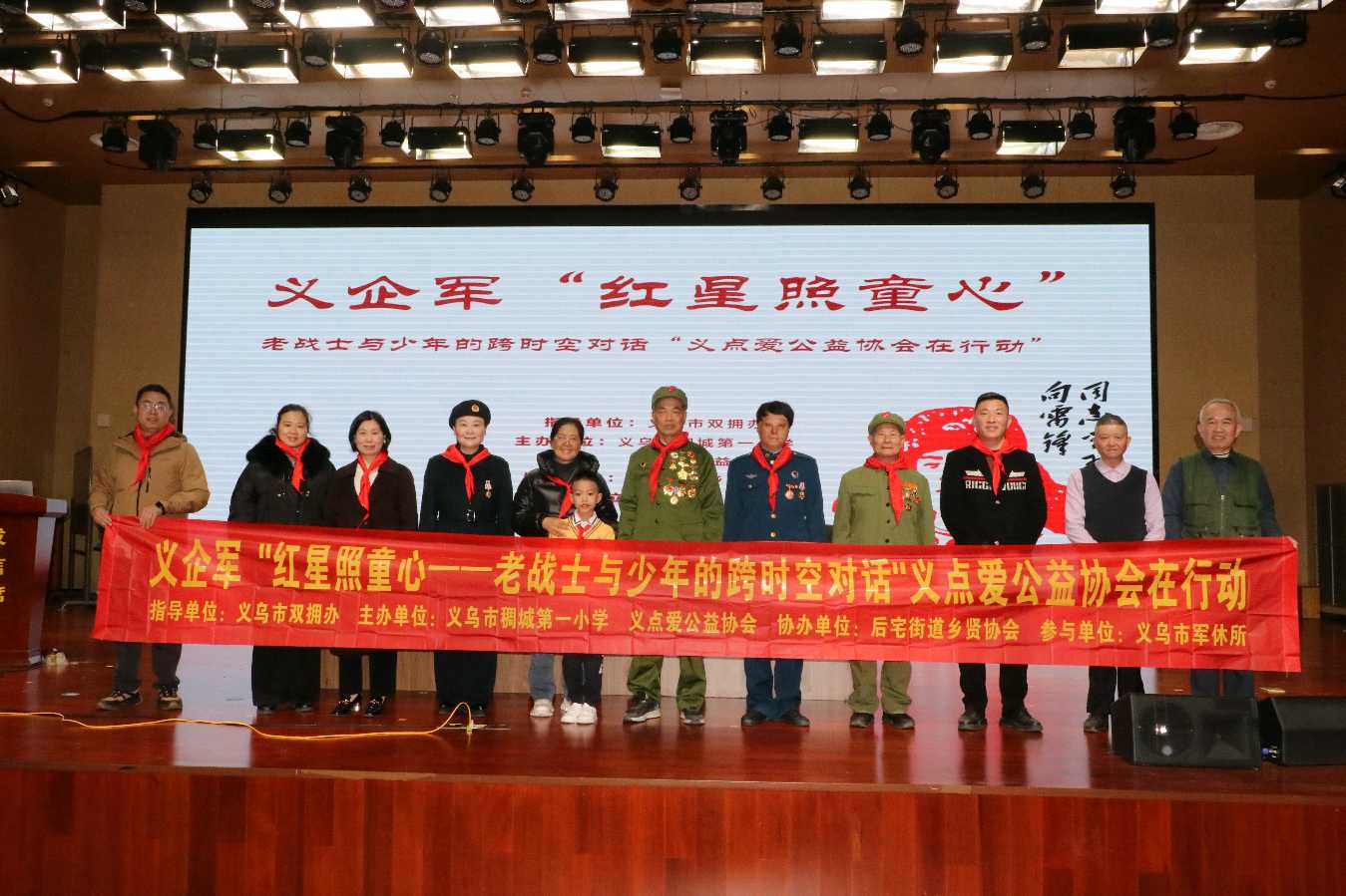 本次活动在义乌市双拥办的指导下,由义乌市稠城第一小学与义点爱公益协会联合主办,后宅街道乡贤协会协办,并得到了义乌市军休所的大力支持。
