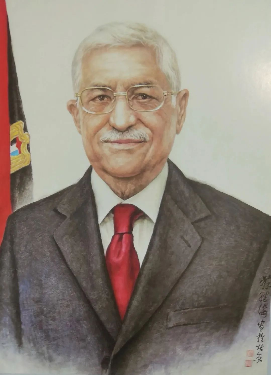 巴勒斯坦国家总统阿巴斯画像,并存列巴勒斯坦国家总统府悬挂珍藏(2010)