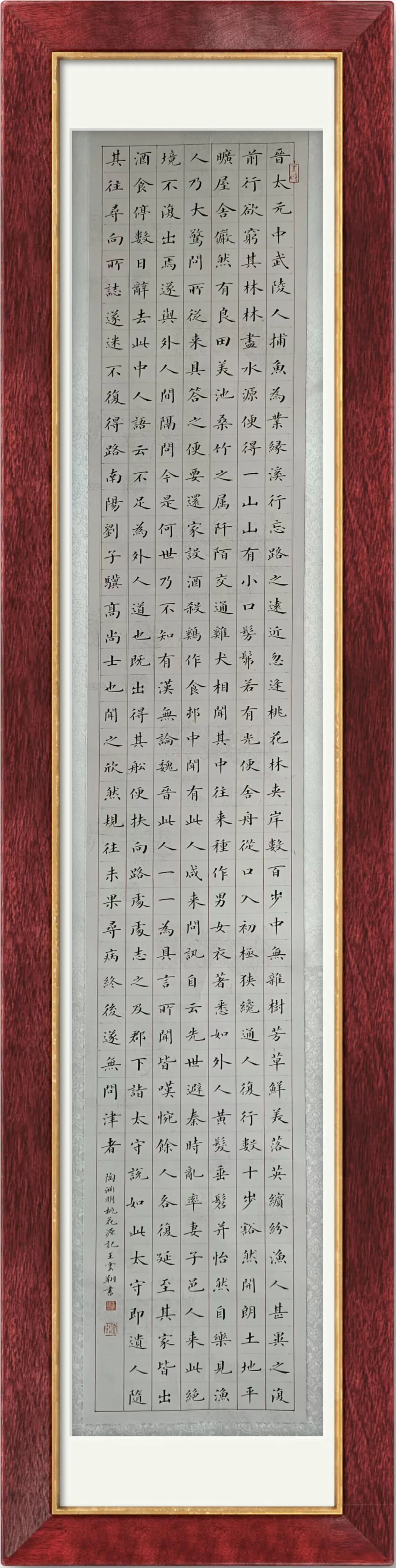 他的书法追求法度严谨,又仰望笔墨的灵动,辩证统一地在楷书创作中先生取法欧体的严谨,兼写颜筋柳骨,展现出对传统法度的深刻把握,结构严谨而不失灵动,笔力遒劲而富有韵味。这种对法度的全能表达,源于对书法艺术的深刻理解与长期的碑帖修炼,唯有临池不缀,才可以写成这一手无可挑剔的金书锦字,书法实力派蕴有真功夫。