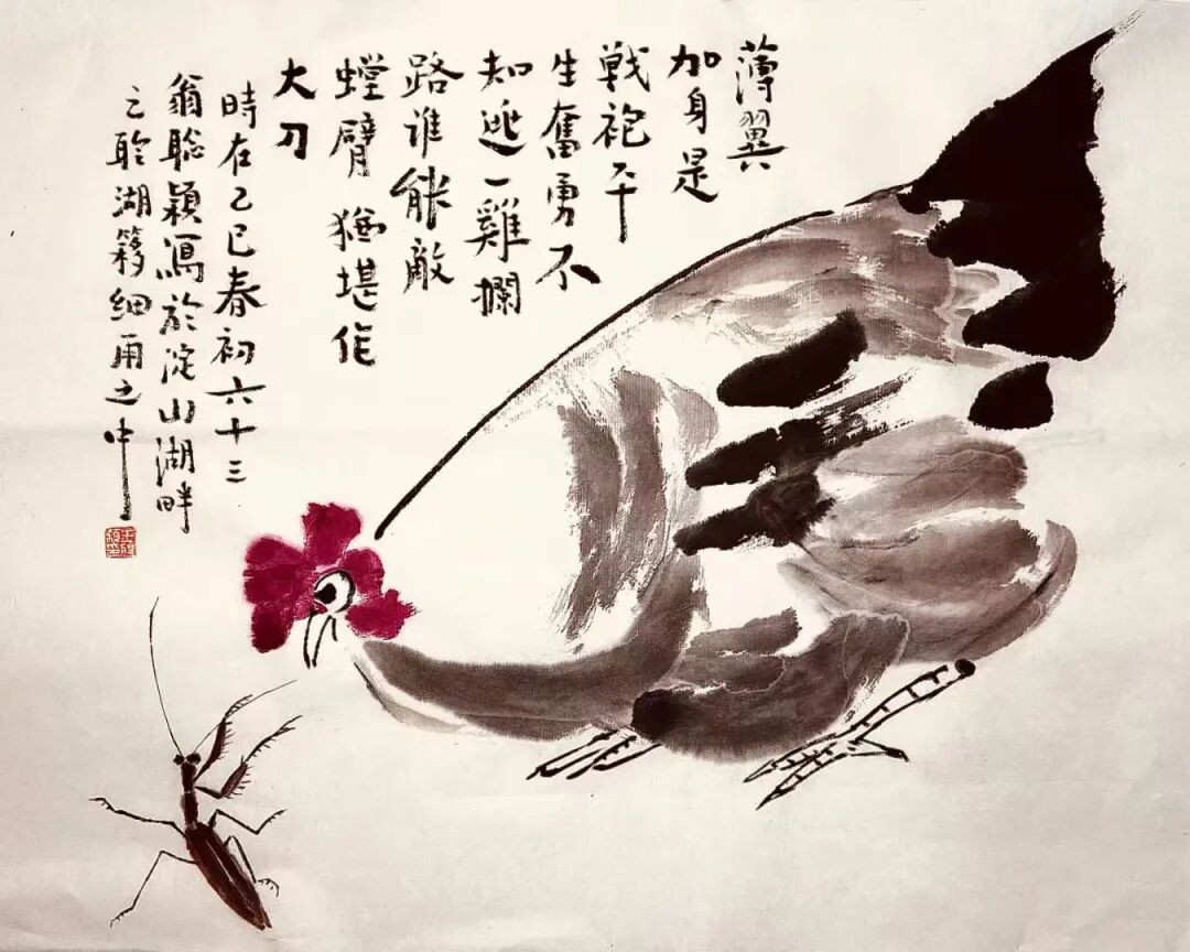一鸡拦路谁能敌,螳臂犹堪作大刀。