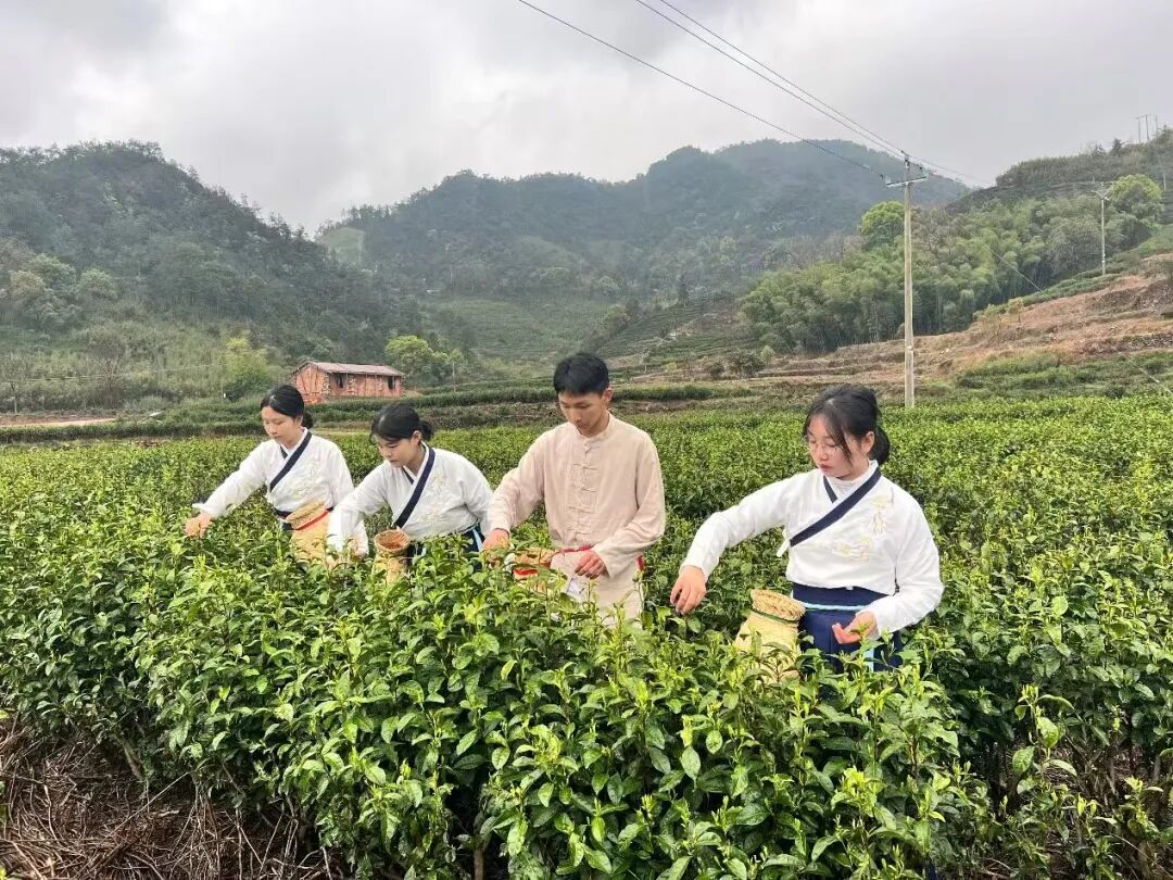 嫩绿初芽和露撷,云峰日出采茶声。