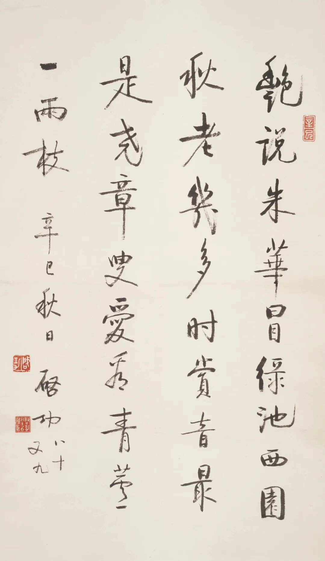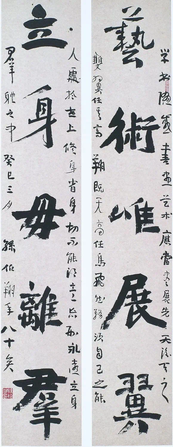 4,孙伯翔:被誉为“北碑第一人”,孙伯翔以《始平公造像记》为根基,将魏碑笔法融入行草,作品气韵雄浑中透金石气。