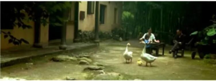 几只麻鸡捉蝴蝶,一条黑狗戏虾蟆。
