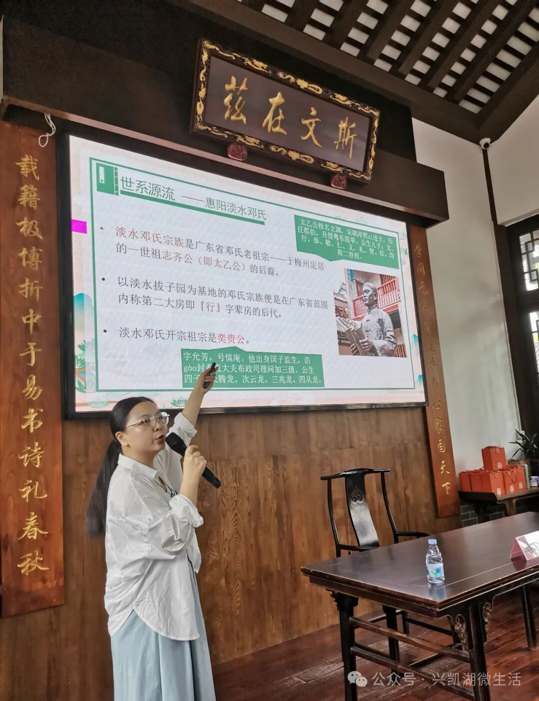 主讲嘉宾黄秀丽以《惠阳淡水邓氏,奖学课艺勉胤奋进、造福桑梓广育良才》为主题,向聆听者介绍了邓氏家族的家风。