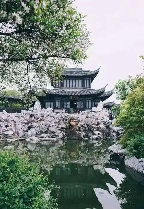 挑檐直探九重碧,幽径斜穿百叠潮。