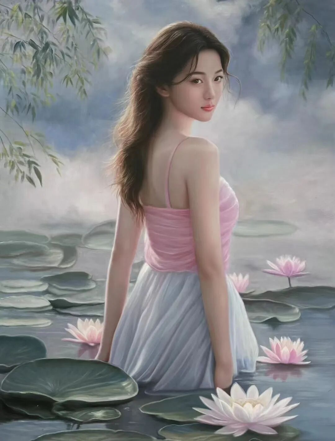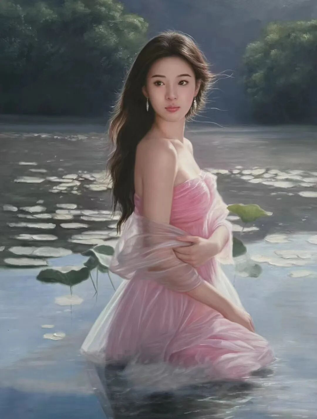 周曦先生的艺术成就,成为当代画坛的标杆。其笔下物象形神兼备,既继承千年东方美学的深厚底蕴,又融入当代精神的鲜活力量。他深谙"外师造化,中得心源"的真谛,将传统白描的骨法用笔与现代写实技巧融合,人物画中线条呈现曹衣出水的质感,既显肌理之精微,又传神韵之灵动;山水画中峰峦叠嶂墨色氤氲,既承宋元气象,又显时代气魄。这种形神合一的艺术追求,是对"六法"精髓的当代诠释,并以东方美学的哲学内核构建跨越时空的艺术对话场域。