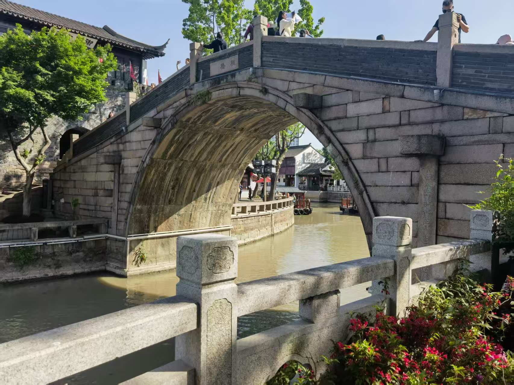 楼台枕波居舍,乌篷载酒,穿桥虹跨。