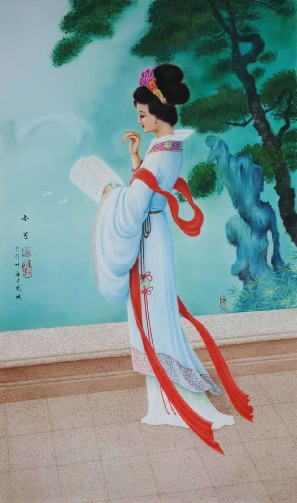 现在致力研究、继承危于失传,濒于消亡的中国传统月份牌国画,为挽救这一世界的、民族的传统画种,舍去平常研创的其它绘画门类,定位这一冷门,将研究项目转向这一艰难的工程,用毕生精力使其沉睡了半个多世纪的艺术流派得以新生。在传承中创新,融合西画之风,创新传统艺术。目下专创月份牌国画中国历代才女图--昭君……蔡琰……宋庆龄……意在弘扬巾帼、放歌史实。