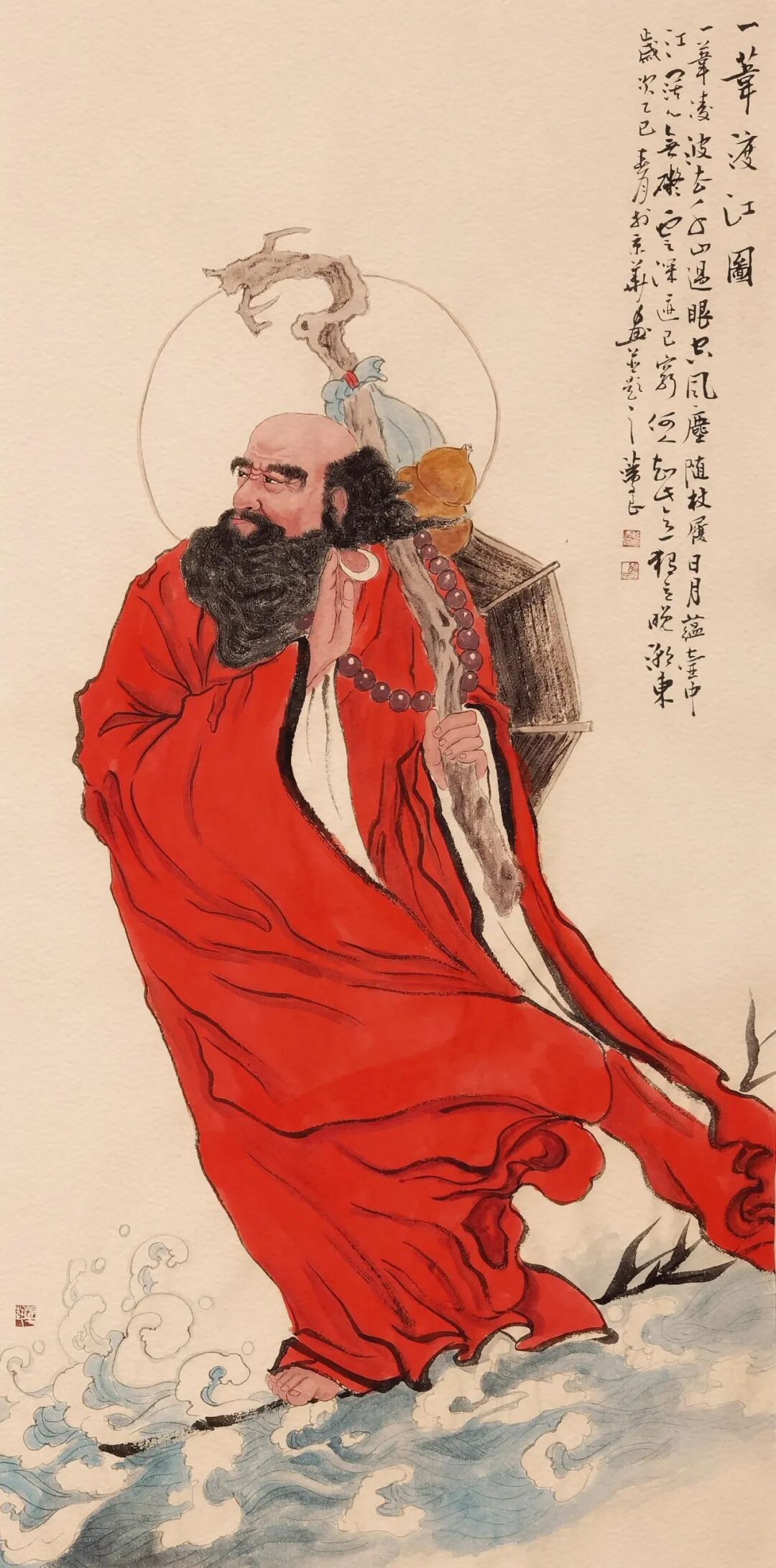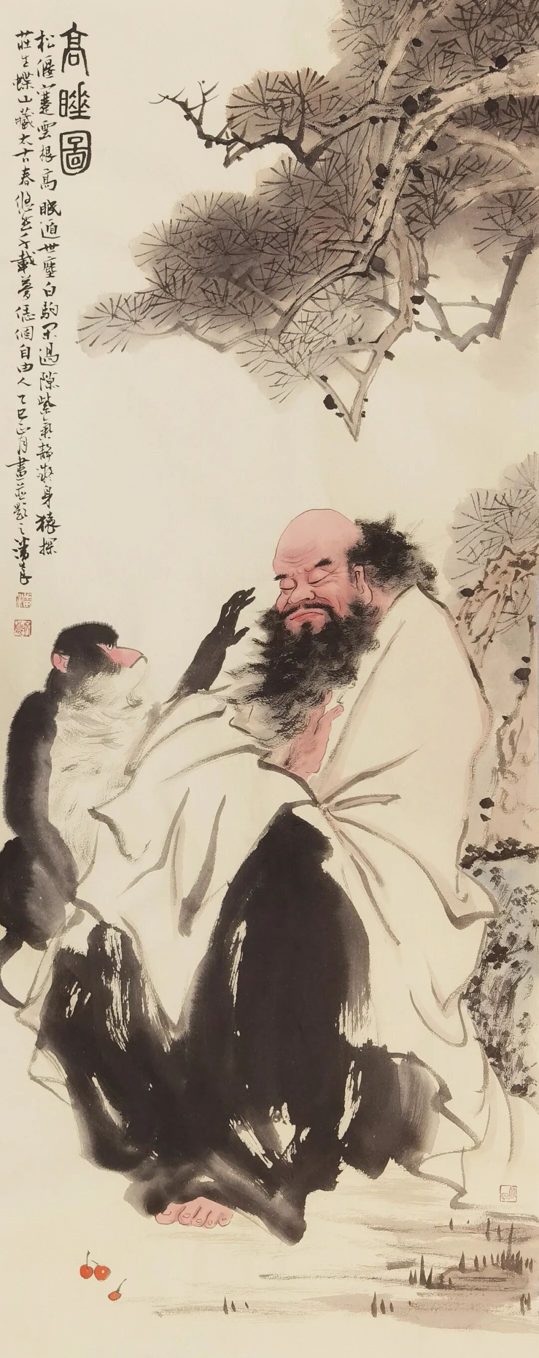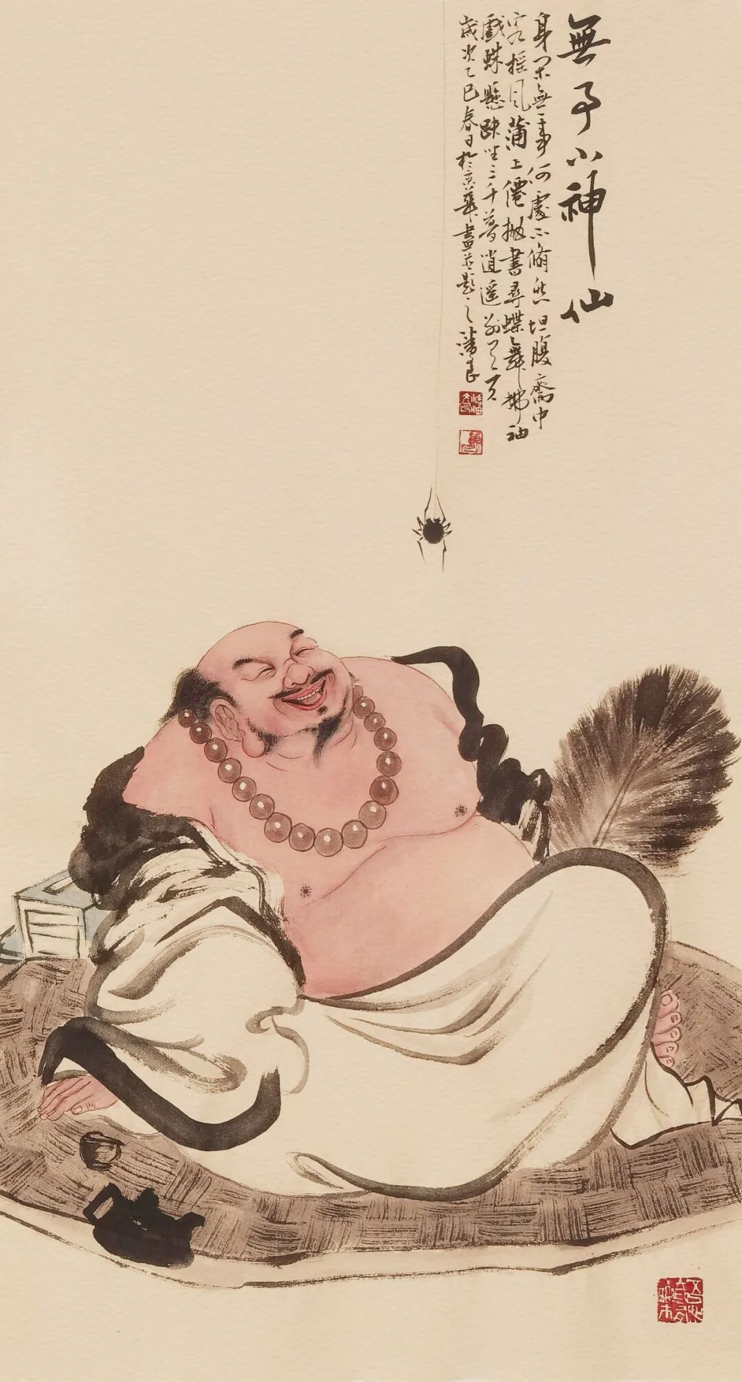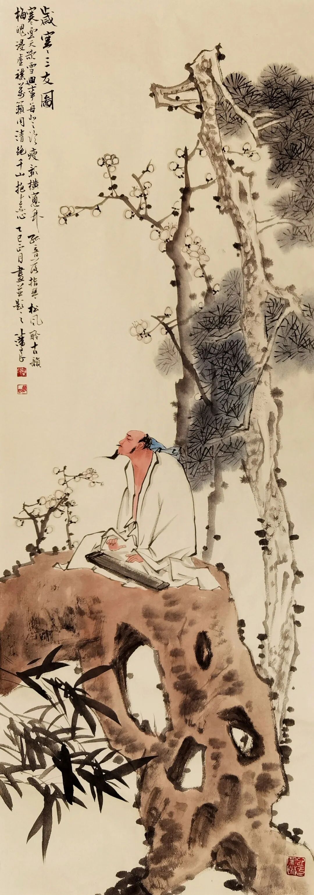 潘文良的人物画同样堪称一绝,在表现手法上,他注重以线造型,衣纹处理简洁有力,人物神态刻画生动自然,寥寥数笔却能传神写照,显示出扎实的造型功底。 他的人物画线条流畅,设色典雅,尤其注重眼神与姿态的刻画,使画中人物栩栩如生,充满生命力。