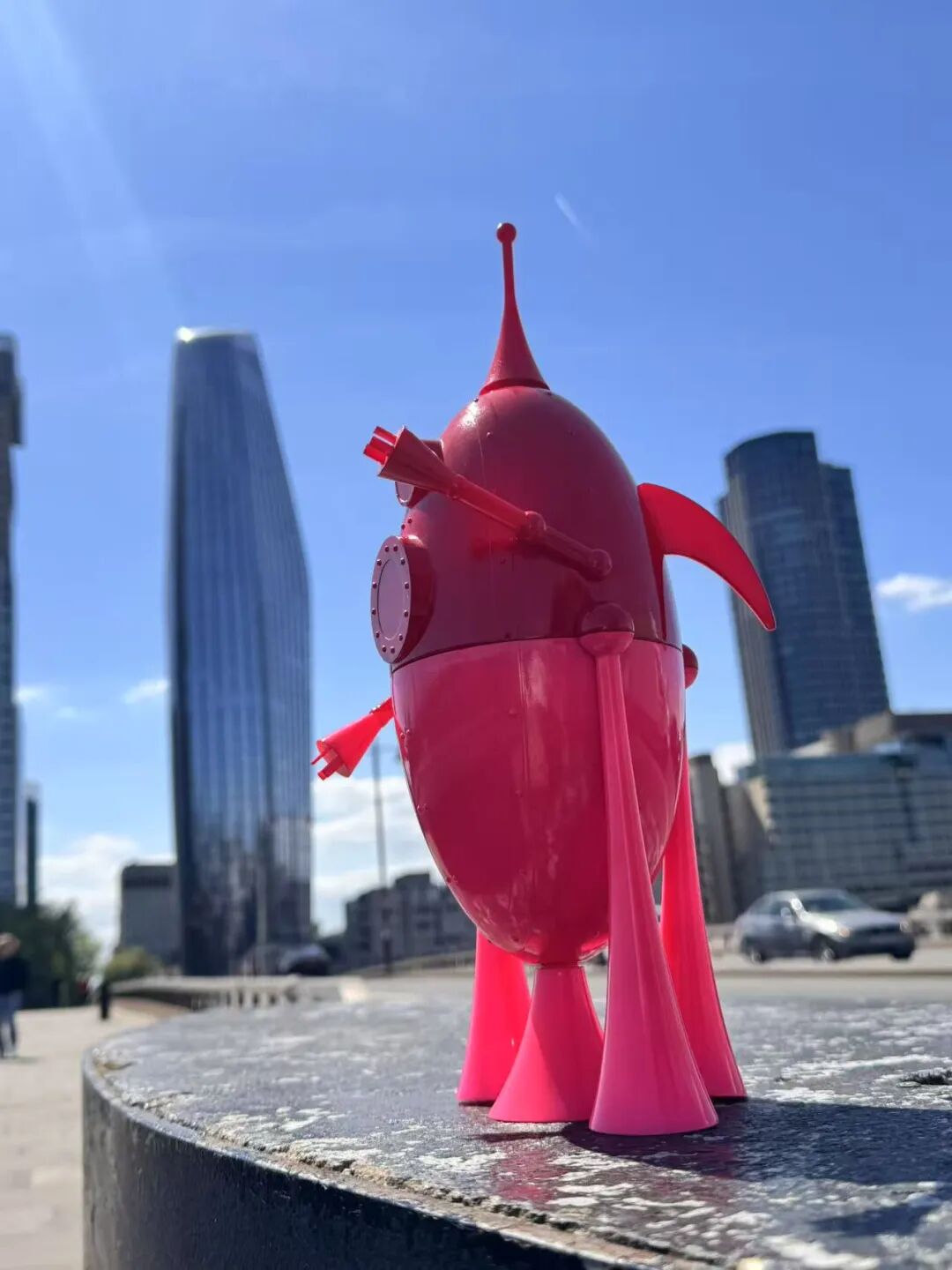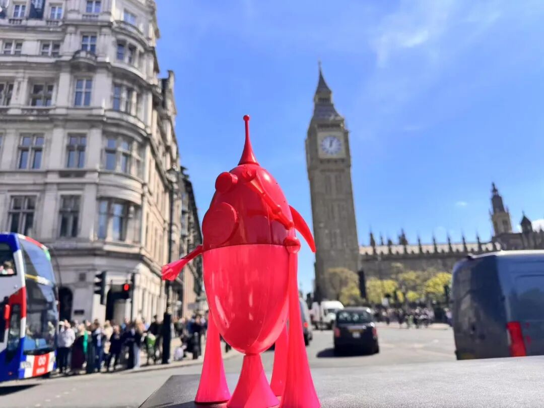于是,她带着这座粉红雕塑走进城市,在伦敦的街头展开一场没有邀请函的行动展。粉红雕塑悄悄出现在大英博物馆前、泰晤士河畔、伦敦铁桥、大本钟、泰德美术馆、英国国家美术馆、地铁站口与城市角落,每一次的出现都像一次打卡,但不为打卡而打卡。