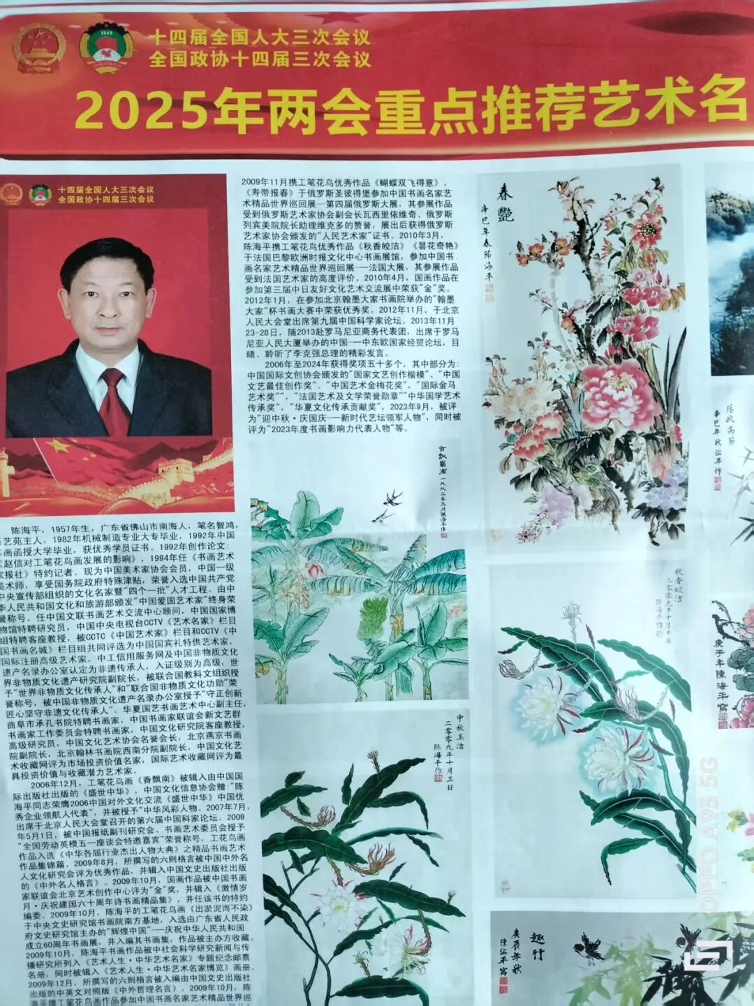 拈来秀色入毫端,看取浓华是我心。回顾陈海平先生的艺术之路,既得徐熙野逸之风骨,又具宋元院体之雅韵,实是融汇古今,自成一家。其画作取象于自然,因墨彩交融而生妙韵;立意于胸襟,因学养深厚而生妙趣,作品实已达精、妙、神三品兼备之境。在未动笔前须兴高意远,已动笔后要气静神凝——此中真谛,也正是其数十载丹青生涯修得的不二法门。现如今,先生虽已誉满艺坛,但一颗赤诚之心却是始终不变!坚守艺术本真,绘写花鸟之魂,将对自然的虔诚礼赞化作满纸生机。这份对自然之美的虔诚追求,足以令观者为之动容!