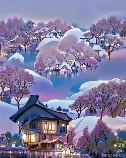 遥夜琼花霜露裁,轩窗横疏影、磬香来。可怜冰玉醉颜腮,凛寒放、别样净尘涯。 掩卷下庭阶,满眸皑雪景、锁眉开。柳翁绝句释幽怀,飞鸟尽、空对旧梅台。