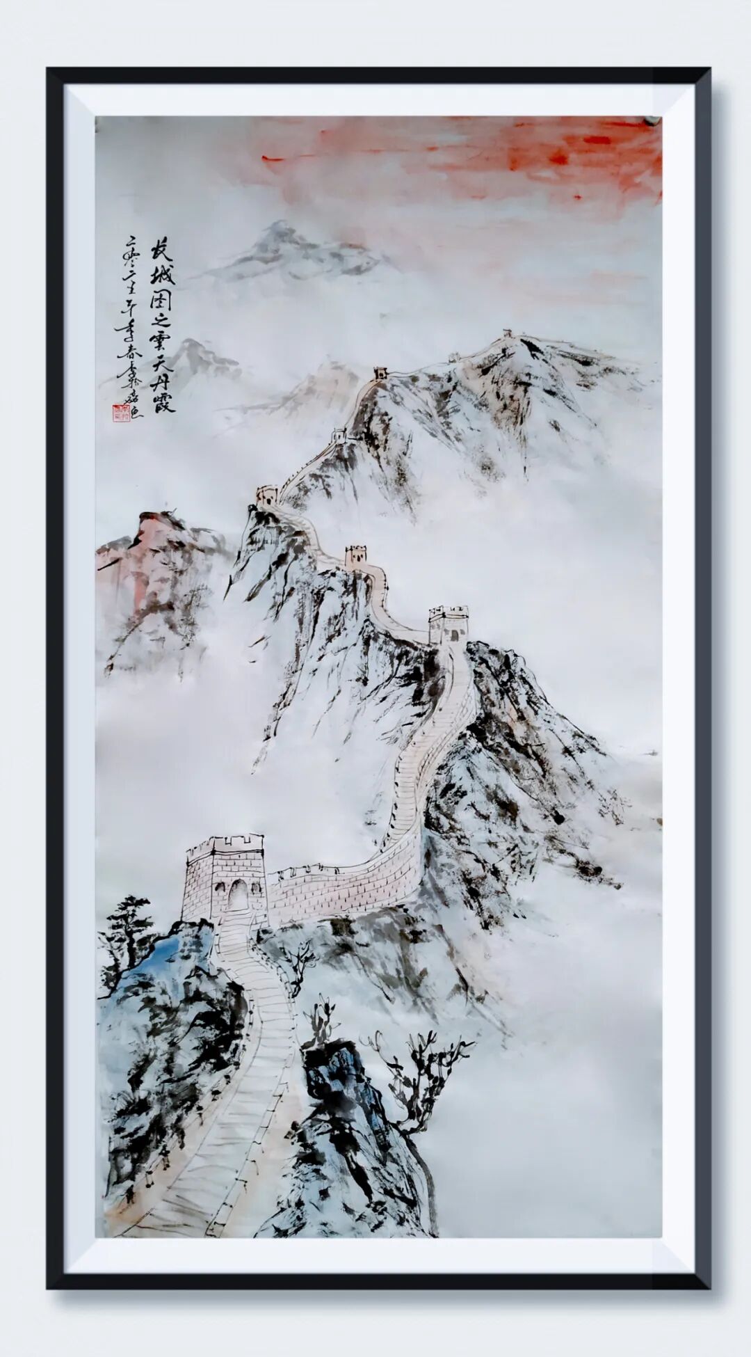 八尺全开山水系列:国画《江山如此多娇之长城图》(248*129cm)