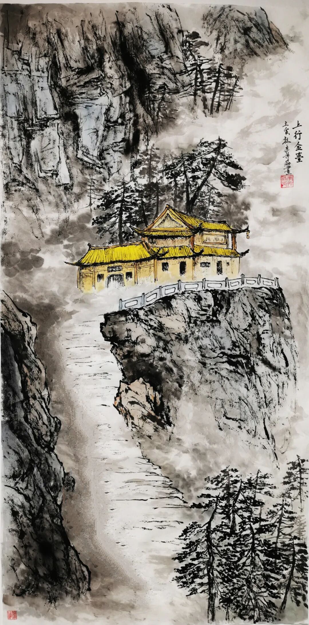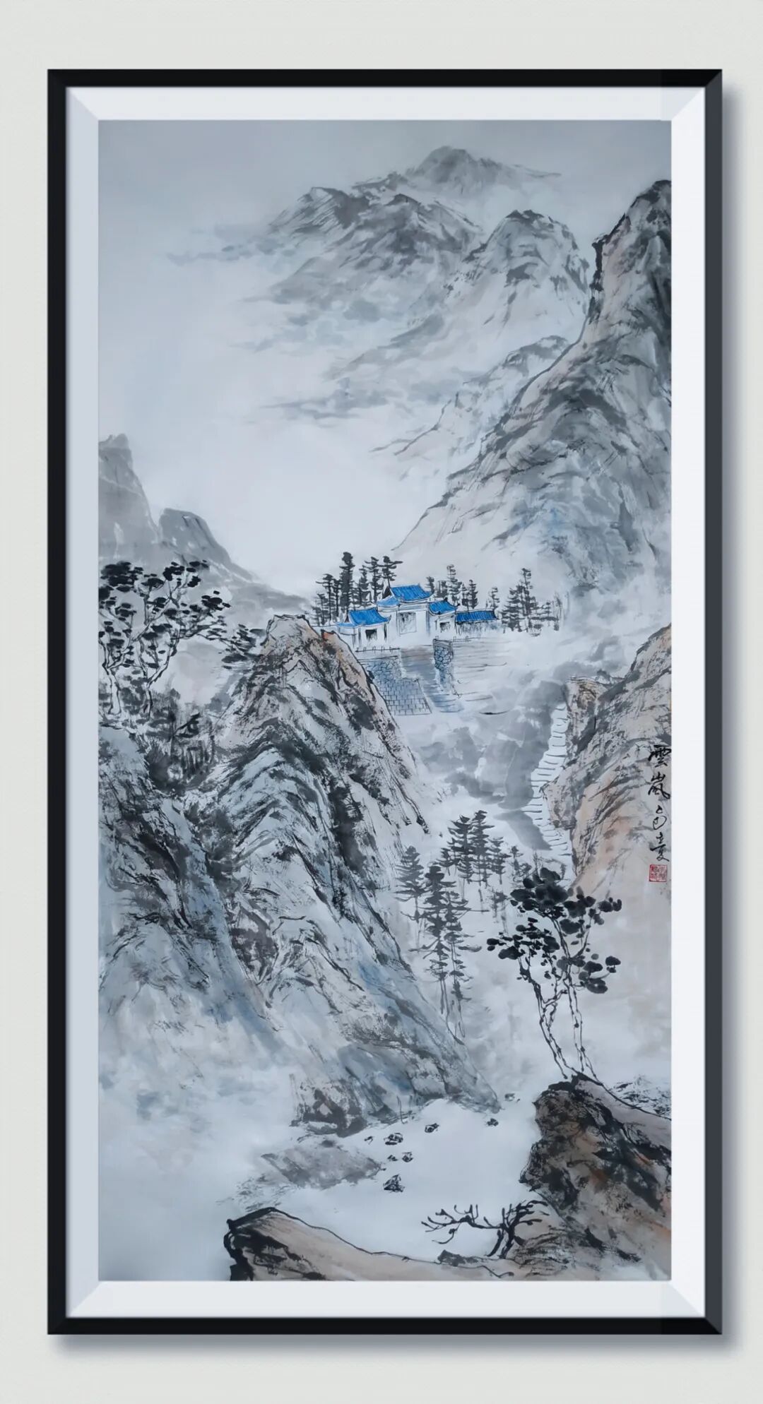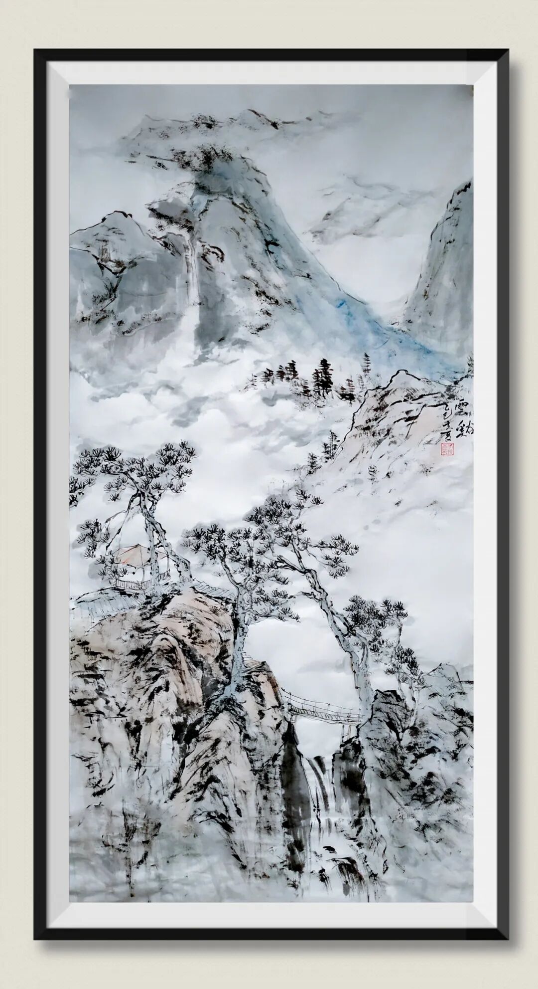 八尺全开山水系列国画《千山竞秀万里云》(248*129cm)