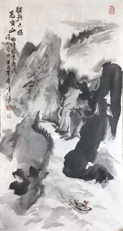 观李福祥先生的山水作品,可见他追求的是一种心源外化的情景山水,当然,笔下所绘山水众幅,也绝不是千篇一律的表现,而是都具有着不同水墨风格的外貌,是谓各具其境。诸如浑姿浓厚的奇雄之势,氤氲淋漓的险峻之态,都是能在笔墨的虚实浓淡中得以彰显。此正如古人所言画论:“作画但须顾气势轮廓,不必求好景,亦不必拘旧稿。若于开合起伏得法,轮廓气势已合,则脉络顿挫转折处,天然妙景自出”。这是李福祥先生的得悟真诠,也是他从艺以来始终恪守的论道之证。