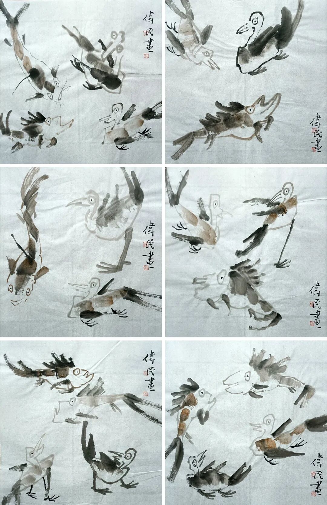 他对画品的创作质感,有着相当严格的境界追求,不活为败,稍呆亦为败,不合自己之意,绝然不会示之于人,所以我们观阅到他的鱼题作品,都是经由严格酝酿的精工尚品,绝无一丝瑕疵,艺术价值和市场价值自然遥上云天,珍贵难得。技法上的精工,让他有了求一品求臻美的底气,一幅鱼绘一腔心血,艺术珍品尽在功到,这是人们观其鱼图,叹称王者之尊的重要原因。现在执笔画鱼的画家也不是少数,但真正能像祝伟民这样,以全能的技法水准,以严谨的创作态度,以绘质流传春秋的创作追求而登临大家境界的优秀鱼画专家,是非常少的。或者说祝伟民是近乎唯一的鱼画王者,人们观其鱼,而赋江南鱼王的赞叹就是基于品质的感动,进而激发出的自然情怀,因服而叹!