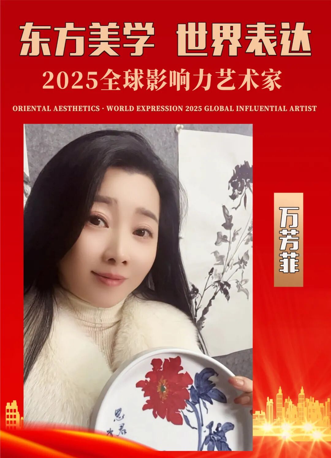 画家万芳菲女士素有“江南花鸟仙子”美誉,她的艺术造诣超越地域国界八方多闻,曾获“世界公益与文化和平和谐使者”“国际慈善大使”“中国最具影响力书画大师”“中国时代德艺双馨艺术家”等殊荣,荣誉加身却始终秉持初心,全身心地以画笔创作东方美学的诗意属性,成为当代书画艺术一颗璀璨靓星。