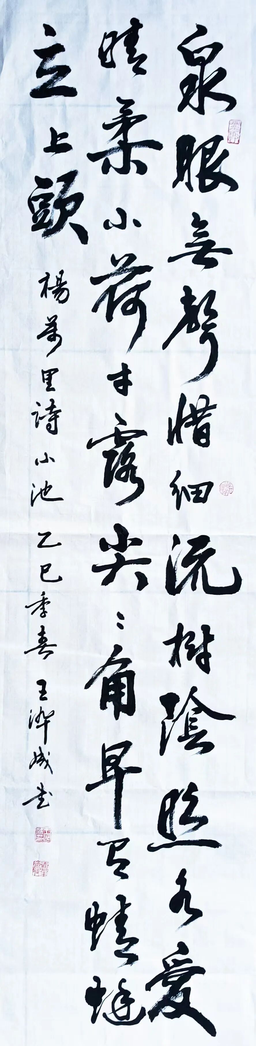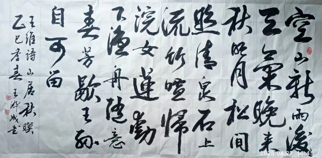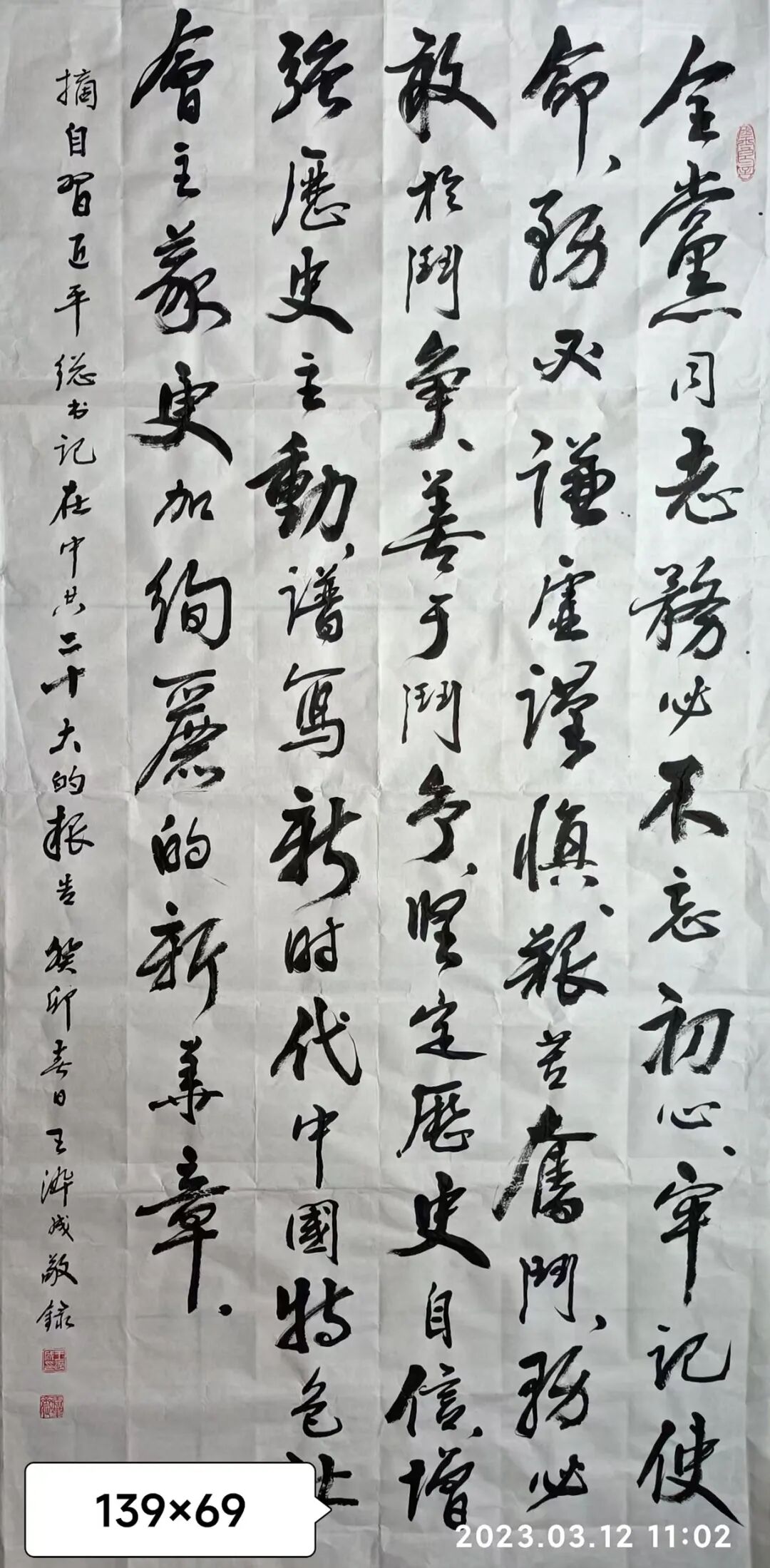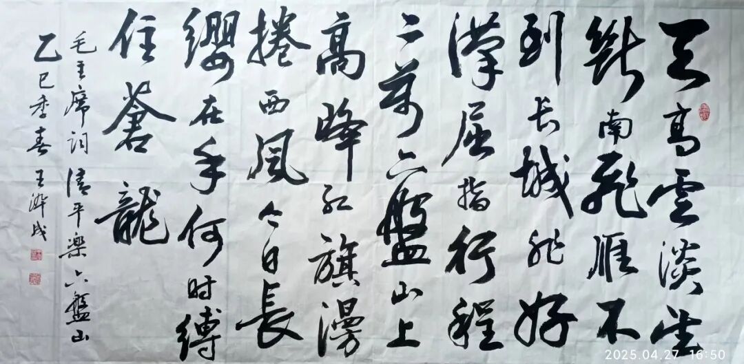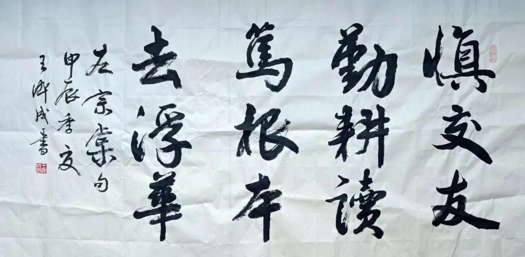 他学习书法的体会是:好的书法作品是刻苦精神和理解能力相结合的产物。一个人只要能长期地坚持和善于读帖、临帖、化帖,就一定能把古贤的用笔方法和美妙造型化作自己的神来之笔。