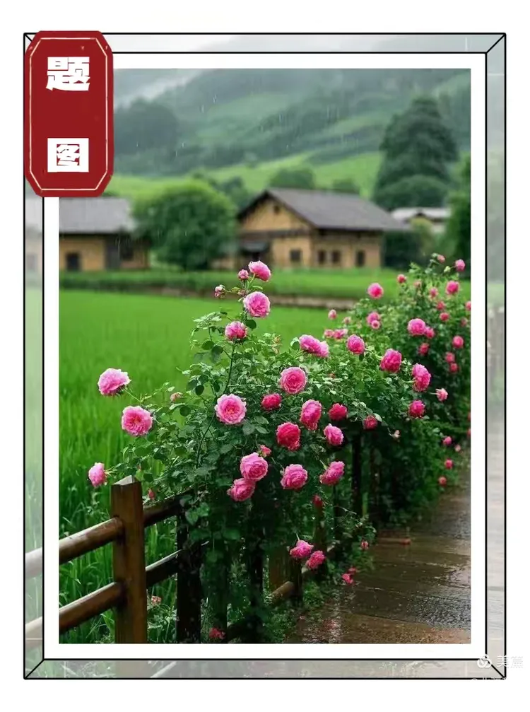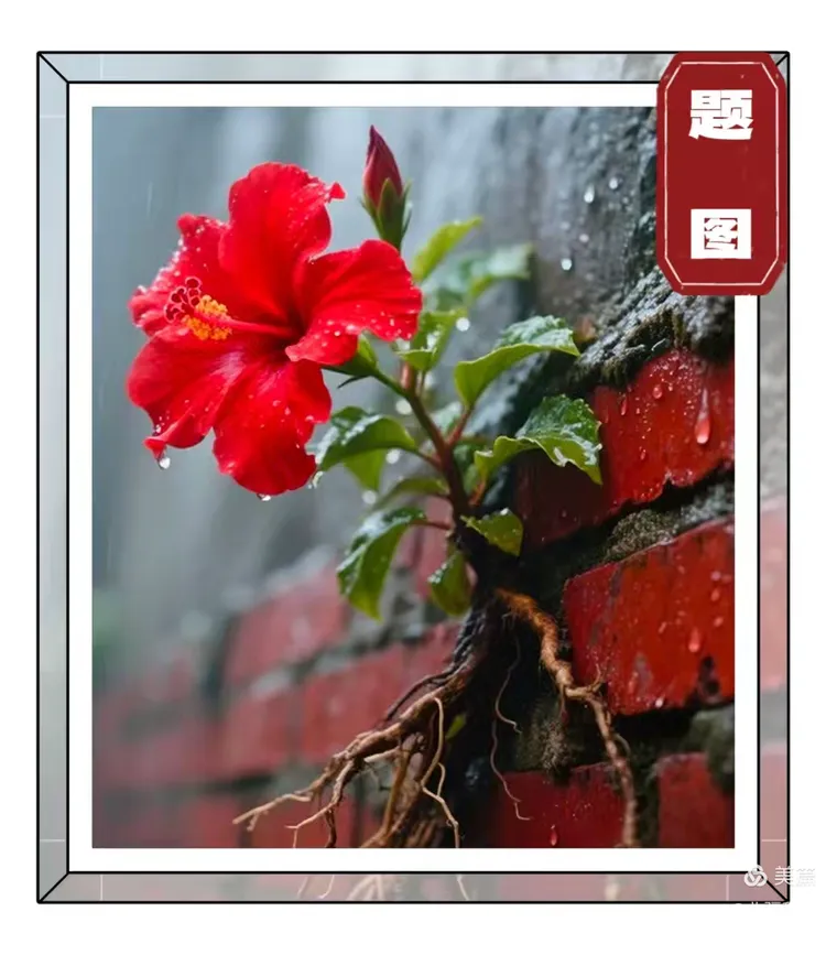 红墙沐雨绽奇葩,