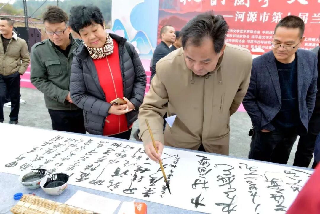 为了弘扬书法艺术,缪贵昌成立了“胜林阁”书法艺术工作室,积极组织各类书法活动,如创办河源兰亭雅会,为河源书法家及书法爱好者搭建起一个交流学习的平台,促进了河源书法艺术的繁荣发展。他还积极推动书法进学校、进社区,开展书法普及教育活动,让更多的人了解和喜爱书法艺术。在他的悉心指导下,一批又一批书法人才脱颖而出,为河源书法事业注入了新的活力。