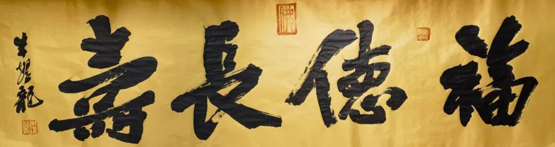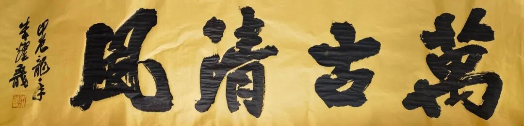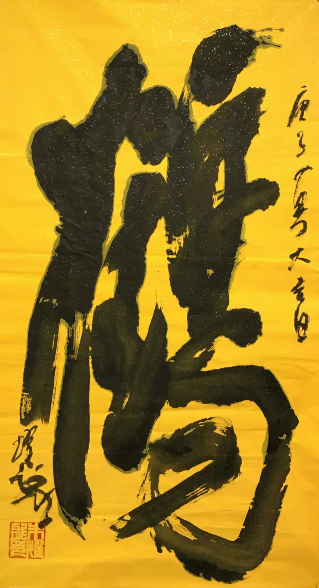 朱耀龙的榜书,不仅仅是书法技艺的精彩展示,更是他对传统文化传承与弘扬的结晶。大墨磅礴随心所欲,又不失法度,在规矩的框架内展现超脱游于艺术的大自由!大笔如椽,自由而不逾矩,在规则之中展现艺术的无限可能,既满足专业鉴赏的高标准,也触动了广大公众的审美共鸣,极大地增强了榜书在社会文化生活中的影响力,使之成为连接古典与现代,雅俗共赏的艺术典范,提升了榜书服务社会文化生活的艺影响力,让书法可以接地气兴鸿运!成为收藏和文化审美的代言臻品!特别是他的榜书作品在公共空间的装饰价值出尤显突出,一经装饰采用,就会营造出庄重而雄浑的氛围,提升场所文化品位和精神界别,无论是政府机构、企业大厅还是私人居所,都是其榜书法大展宏图的平台! 执笔纵摩崖,落墨若石刻。他用榜书支撑书法文化的砥柱,赢得了书法弘扬的不世之功!不仅重新激活了榜书这一重要书法形式的生命力,更为当代书法艺术的多元化发展做出立标定位的新贡献,在书法史上写下了浓墨重彩的一笔!