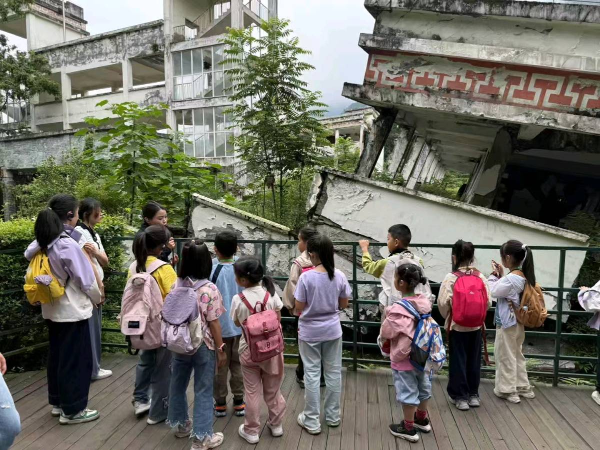 映秀镇的石板路泛着青苔,讲解员的声音穿过雨幕:“那年地震来得比今天的雨更急。”废墟上野蔷薇开得疯野,断墙裂缝里钻出的新芽,是时光缝补的针脚。有个扎羊角辫的小姑娘突然转身,**她紧紧咬着嘴唇,眼泪像断了线的珠子,扑簌簌地落下来,**泪水在伞下凝成剔透的琥珀,倒映着残缺的钟楼与抽新枝的银杏。那一刻,悲伤与希望,脆弱与坚强,在孩子们的心中交织,化作了对生命更深的敬畏与珍惜。