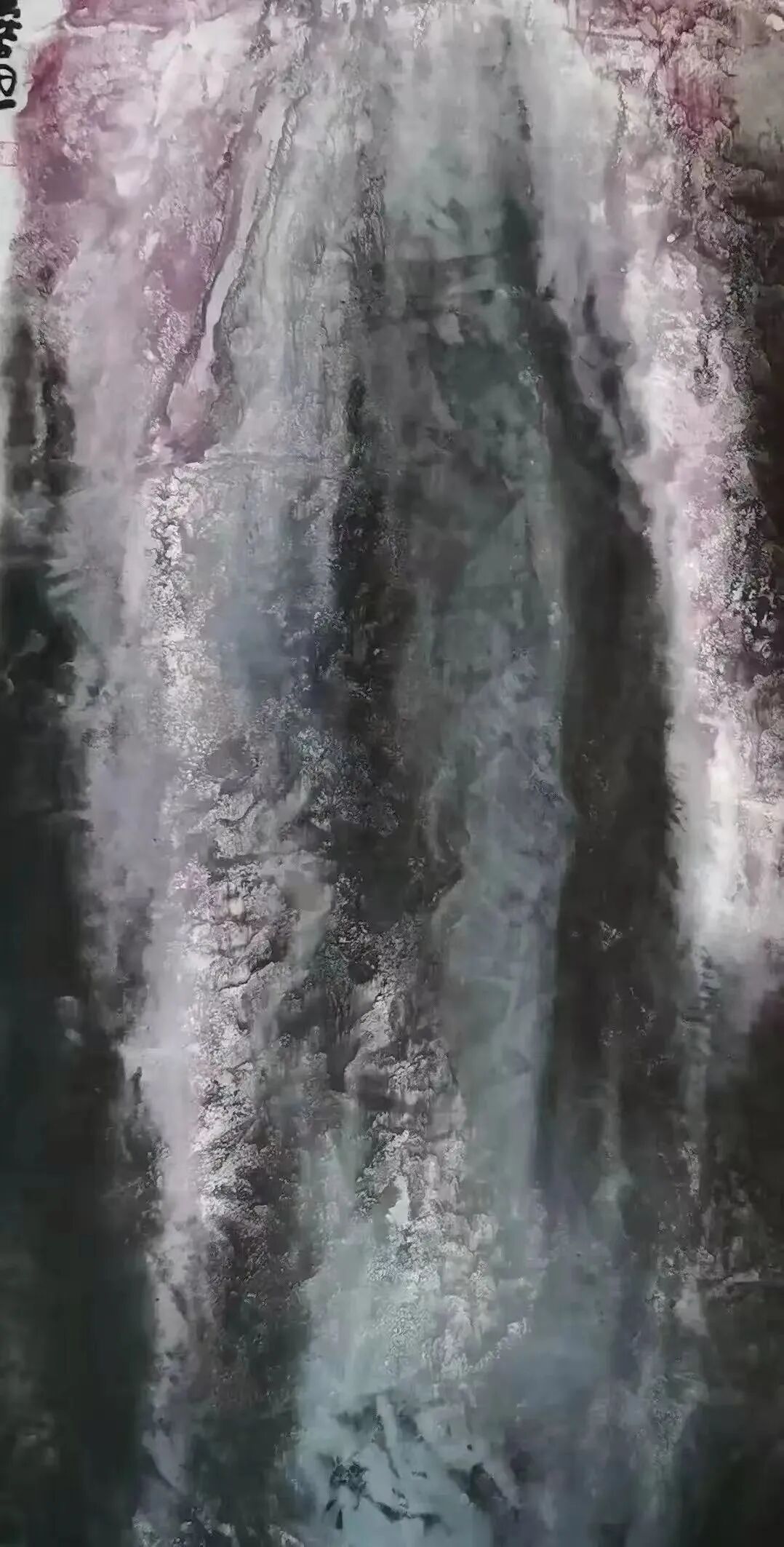 墨色氤氲重构“天人关系”:矿物颜料自然流淌形成的山水肌理,颠覆人类中心主义创作观