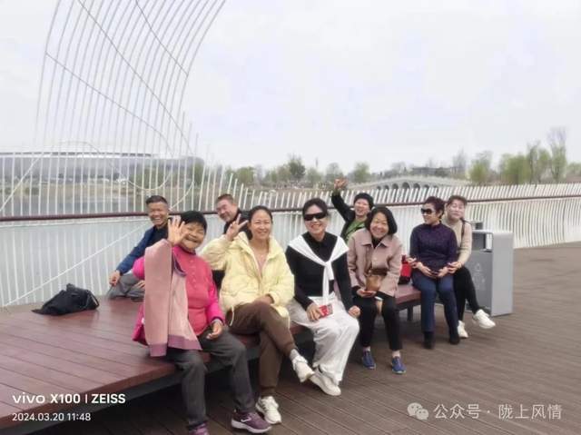 三月的成都龙泉驿东安湖,草长莺飞,桃红柳绿,一派欣欣向荣,我们一众人走累了,坐下来休息,邀请路过的一对母女帮我们拍个合影,她俩可能没听懂我的话,以为我们要和她俩合影,自然而然的坐在旁边加入了我们,我欣然一笑,顺手拍下了一张珍贵的合影。