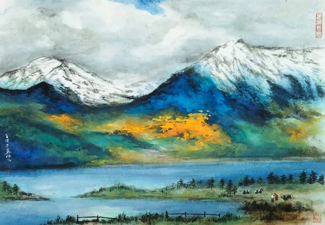 纵览俞关佑的泼彩,可以发现,俞关佑善于以精微之笔刻画具象,以豪放之笔渲染意象,精细处,一丝不苟而活泼灵动,豪放处,尽情敷色而高旷辽阔,同时,他也善于通过微妙的笔触进行具象与意象之间的过渡,笔道中含着阴阳,色彩中藏着虚实,让具象与意象交相辉映,从而使眼中之景与心中之境神遇而迹化,构建成宇宙八荒、万象阴霾尽收眼底的视觉力量,给人一种“定是人为,而浑然天成”的艺术境界。这种境界的表达不再是张大千晚年变法之后,受身体的影响,或受造型、光影、透视欠缺的影响,而给人一种都好、都美,却总有一点不尽兴的阻塞感,俞关佑更不是传统意义上的文人山水的样式,而是一种更能驾驭微妙,更能表达情感的状态,放得开、收得住,很有现代风、很有时代感,体现出新时代的新气象,契合了当代大众的审美感受。当然,笔者不是说俞关佑一定比张大千高明,然而,俞关佑确确实实在张大千的基础上往前迈了一步。