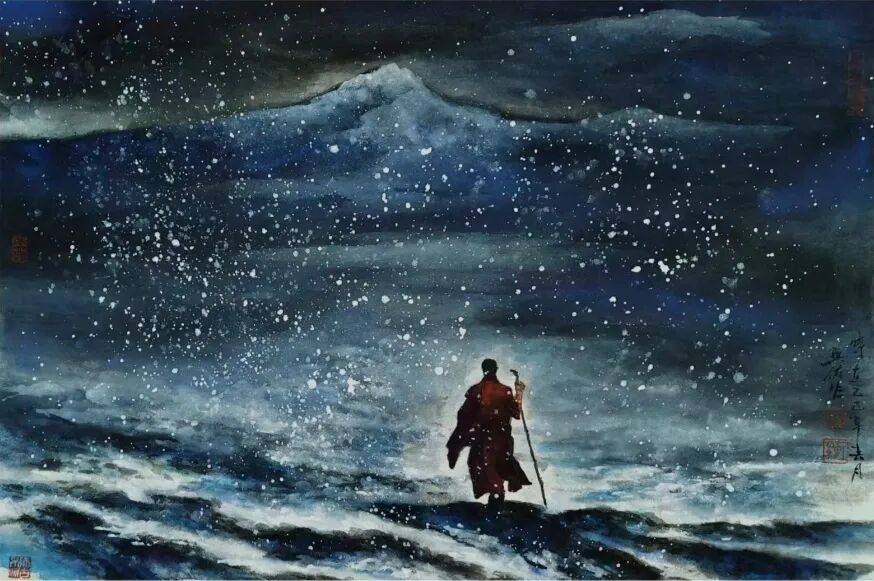 “多彩气象,苍茫大意”;“张大千的幻化世界”;“色彩的海洋、缥缈的仙境”……诸如此类留言,不胜枚举,苛刻挑剔的观众丝毫没有吝惜溢美之辞。这些描绘确实凸显了俞关佑泼彩的视觉美感,可是,如果把俞关佑的泼彩仅仅归结为视觉感观,显然不够准确,或者说不够全面。那么,作为一名专业的艺术评论工作者,笔者则认为:俞关佑的泼彩是艺术表象中的抽象、是视觉形式下涌动的情感、是具象之中意的精神,宛如一座横亘于当代画坛峻拔而浑厚的高山,孕育着博大深邃的文化内涵,是那么沉静、那么肃穆,又是那么葱茏。