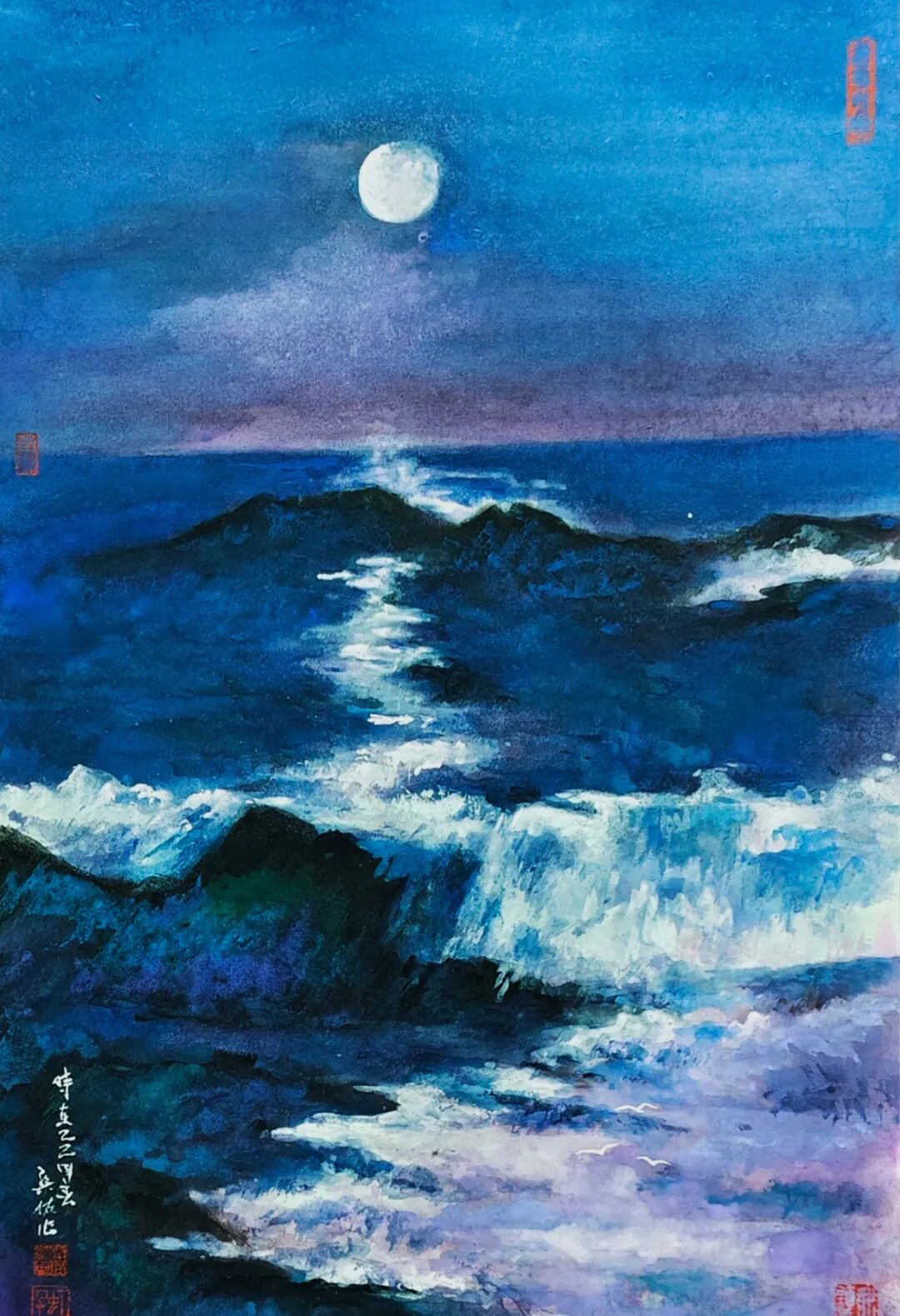 一切触及灵魂的艺术都是渐变、渐进、渐悟而升华的精彩。在艺术的长河中,俞关佑扎扎实实探索,认认真真耕耘,几十年以来,从一笔一画学习古圣先贤到情归泼彩,从“师古、师心、师造化”到化为己有而卓然自立,俞关佑从不被浮云遮眼、蔽目,更不为趋利刻意讨好、奉迎,而是以真功为本,以纯粹为艺术宗旨,积学厚养,融会贯通,从而培育出独具一格的泼彩姿貌,着实让人感动,于是,笔者由感入心,情不自禁,滔滔不绝。(文/桑干)