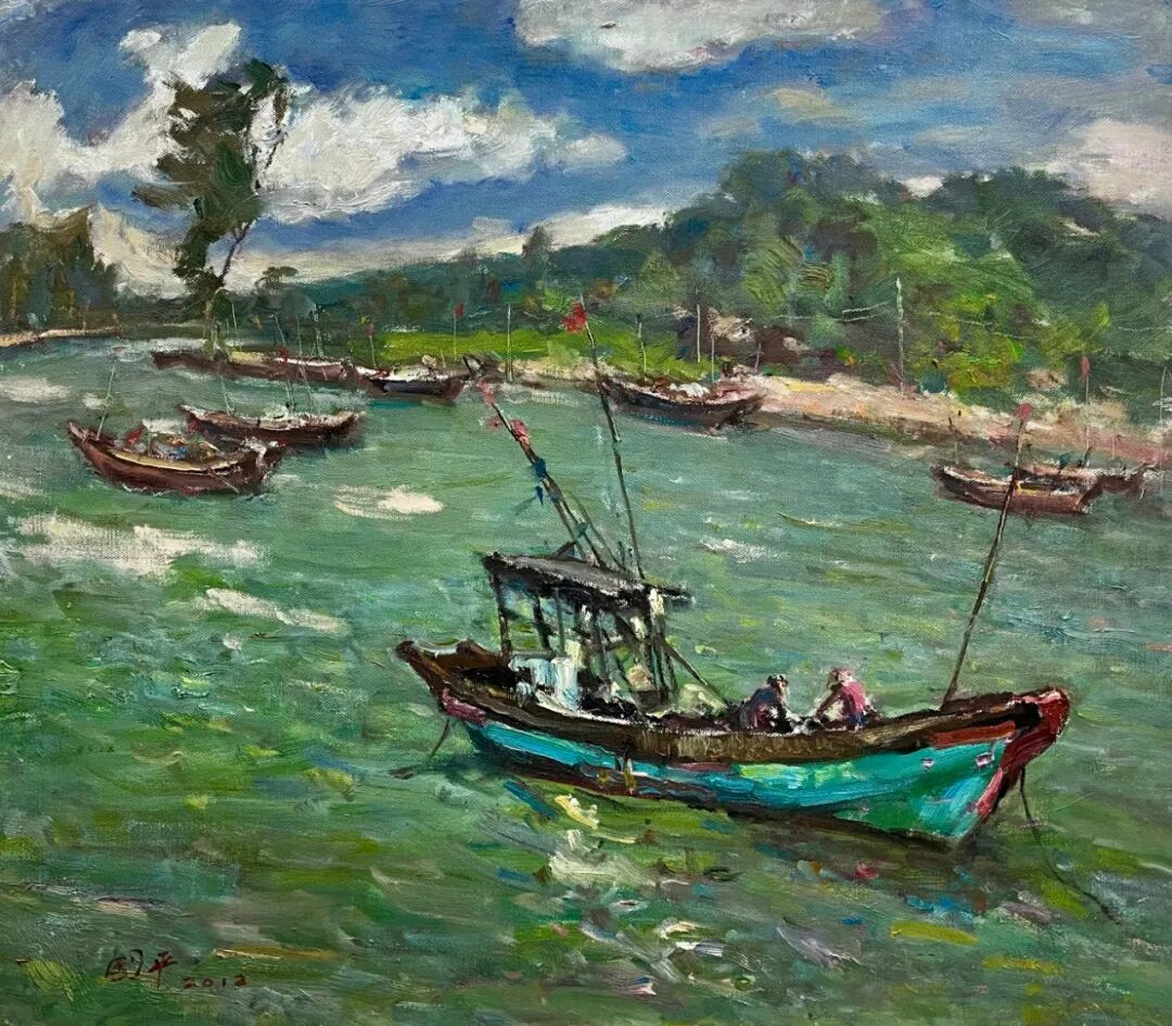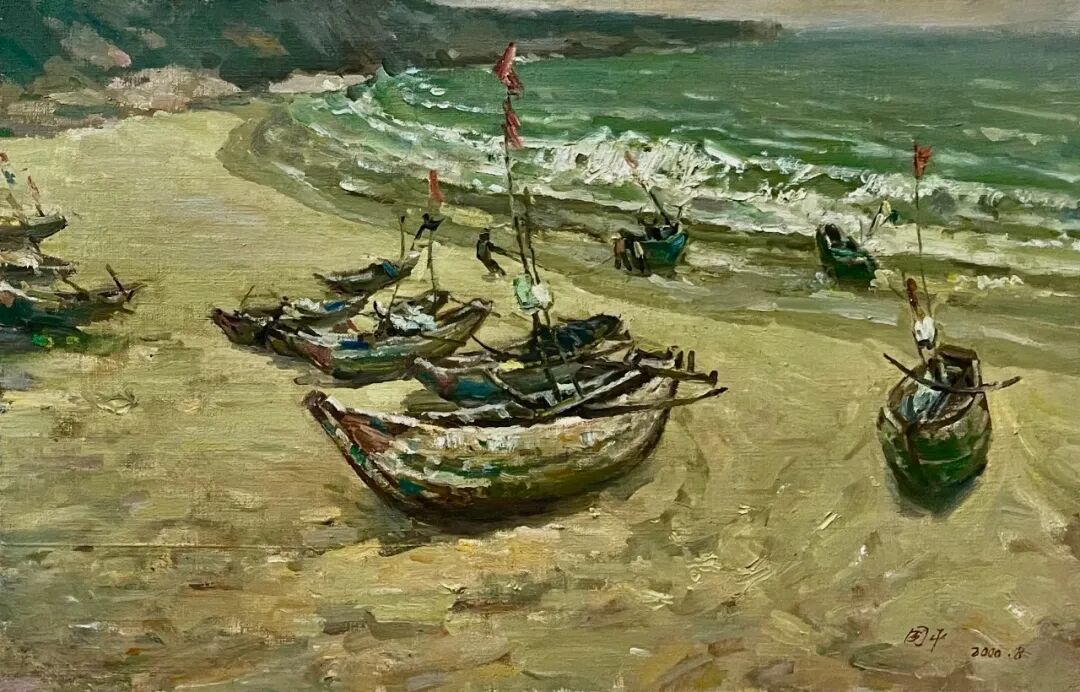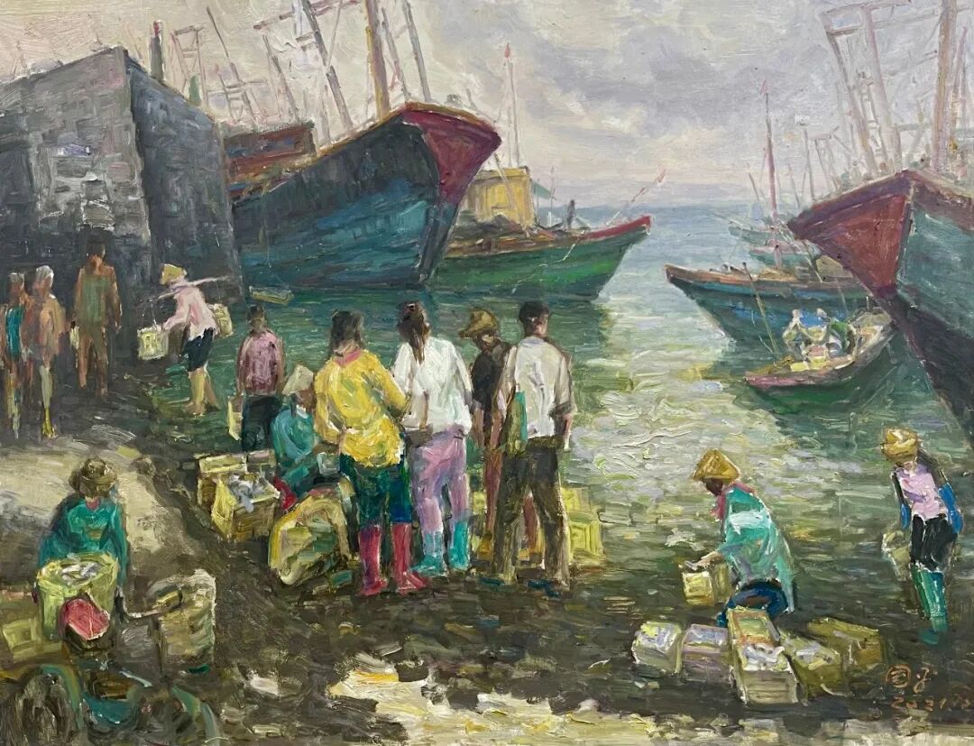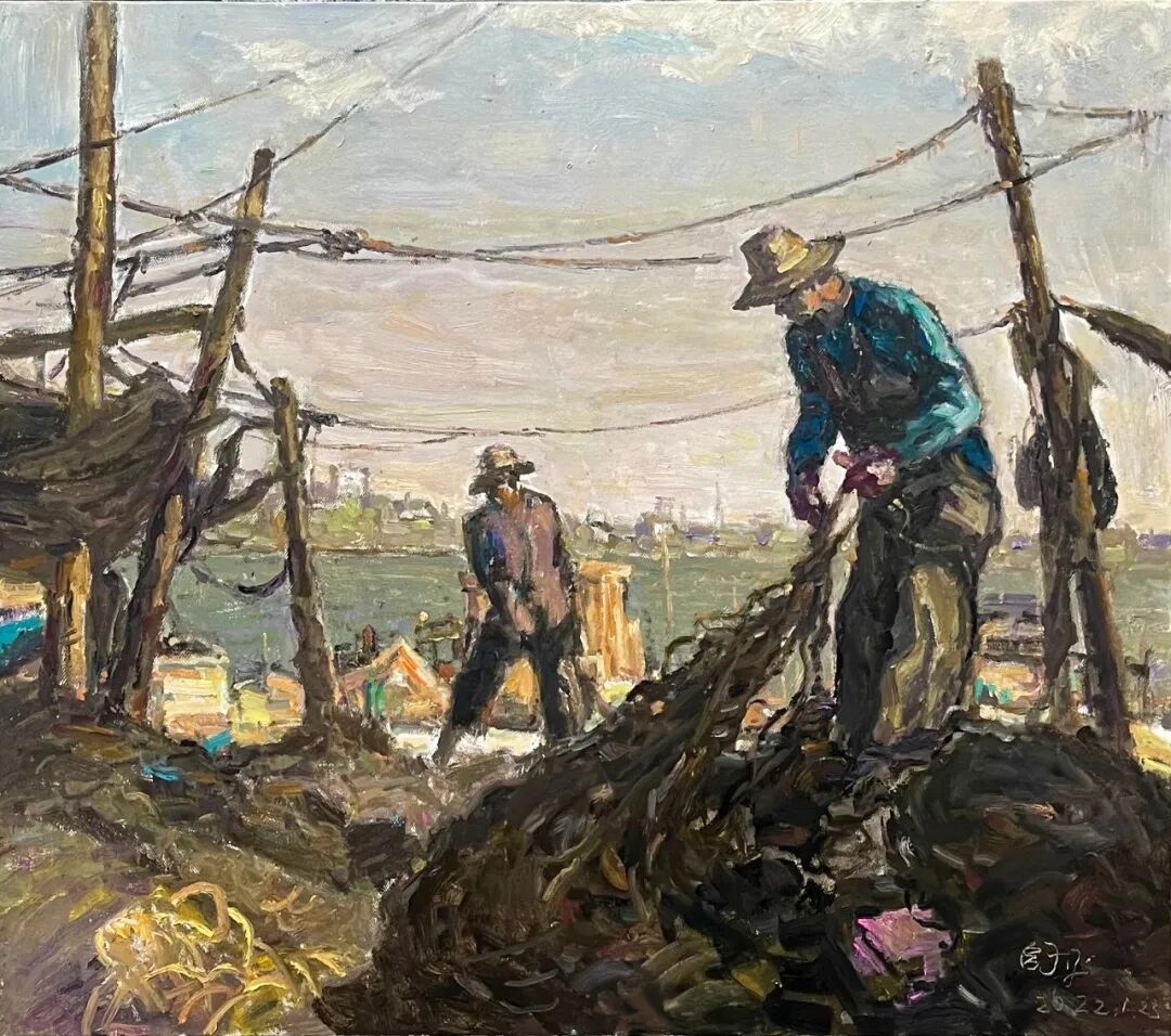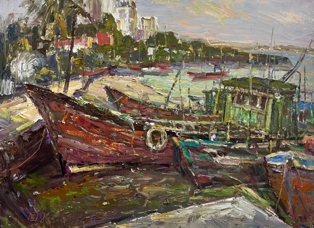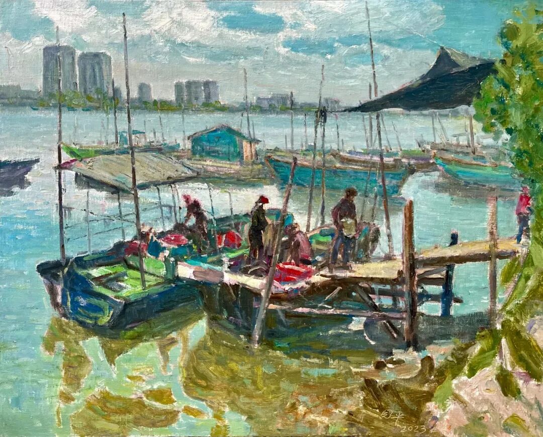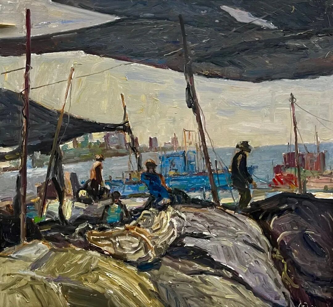 符国平的作品题材广泛,涉及人物、静物、市井风情、渔船码头等各类风景多个方面。他以敏锐的观察力和深厚的生活底蕴,将这些题材生动地展现在画布上。在他的市井风情画中,我们仿佛置身于街头巷尾的生活场景中,感受到浓浓的人间烟火气。那些平凡的人物、普通的生活场景,在他的笔下却变得鲜活而生动。这种广泛的题材选择,充分展示了符国平的绘画技巧和艺术才华,也体现了他对生活的热爱和对社会的关注。符国平的油画作品具有写意和抒情性,同时又具有现代风格的特点和创新精神。他在传统的油画技法基础上,不断尝试新的表现手法,使作品更具时代感和创新性。这些创新之举,使他的作品在传统与现代之间找到了完美的平衡,既传承了油画艺术的精髓,又展现了时代的风貌。