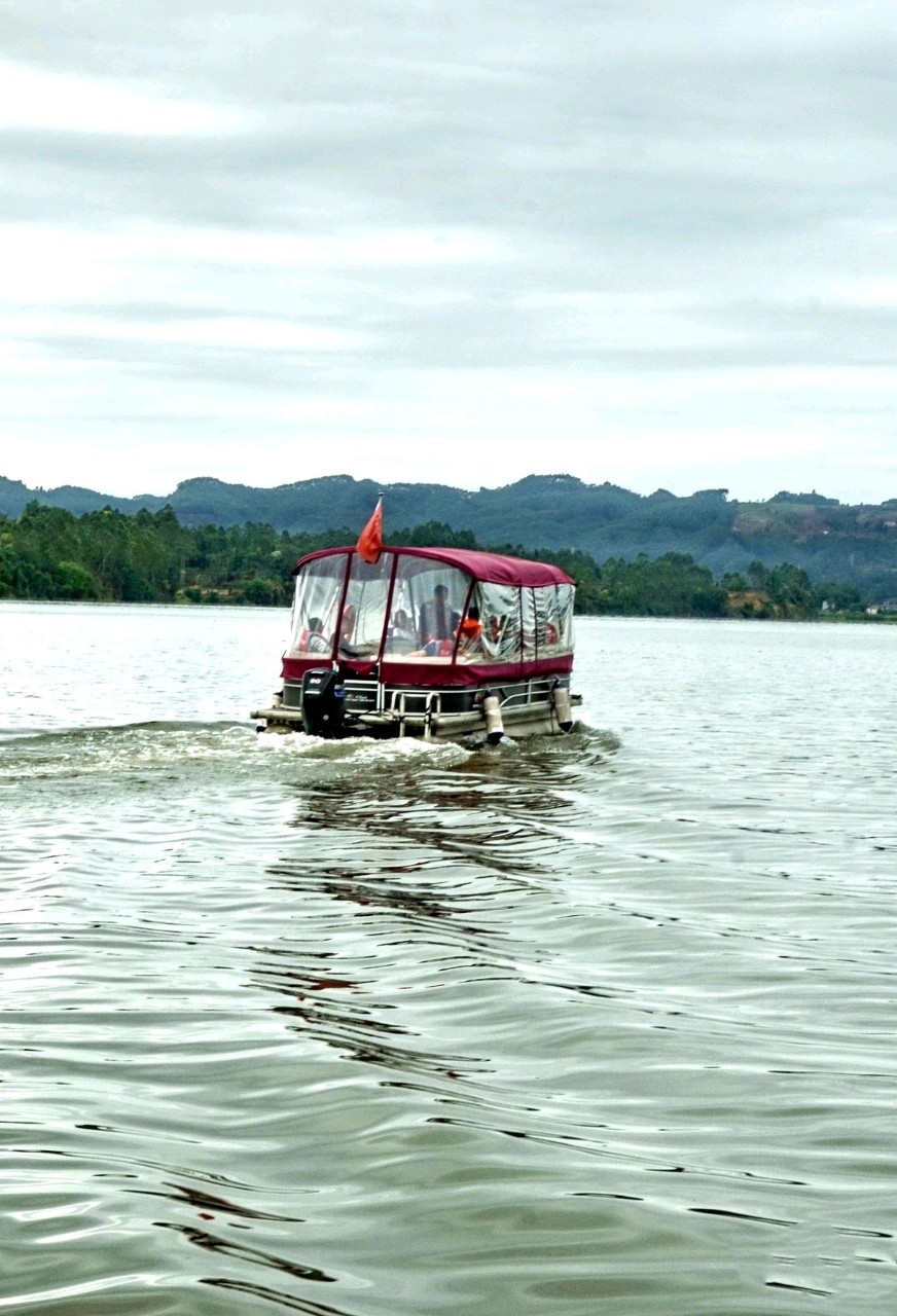 仙姑湖(官厅水库)位于岷江一级支流筒车河左支流上,水域面积52.2万平方米,纵长5公里,拥有52条沟岔组成的复杂水域结构。水清草绿,植被良好,沟壑纵横,风景秀丽。该水库以防洪为主要功能,兼具灌溉、发电、养殖及旅游等综合效益,两岸丹霞地貌与竹林果木形成独特自然景观 。其名称源于隔湖相望的仙姑岩黄姑洞传说,相传黄姓姑娘在此修行羽化成仙。1973年修建水库时,周边行政区划发生调整,栗子村整体划归青神县管辖。库区分布仙姑岩、瓜瓢岩等十余处自然与人文景观,生态环境保持良好。