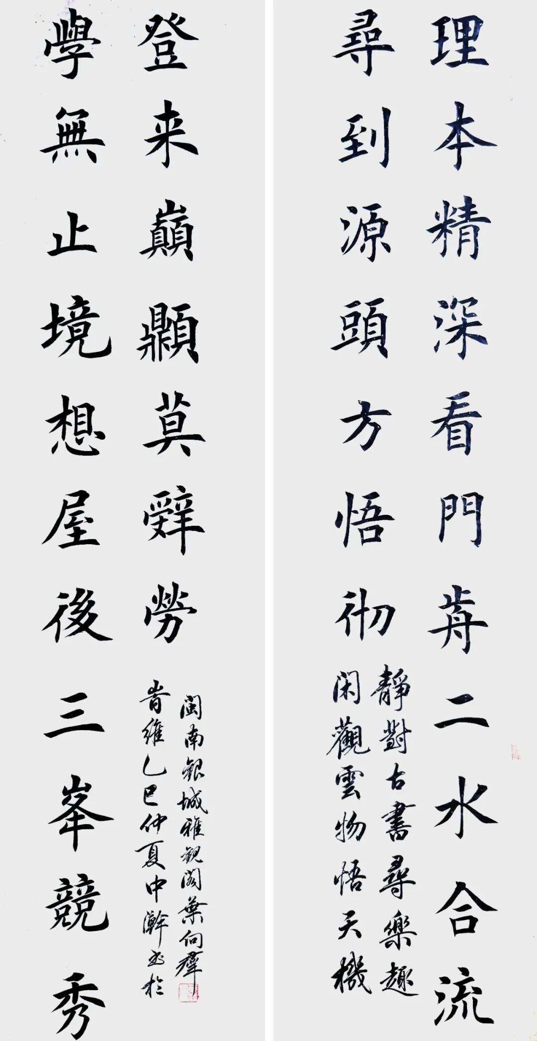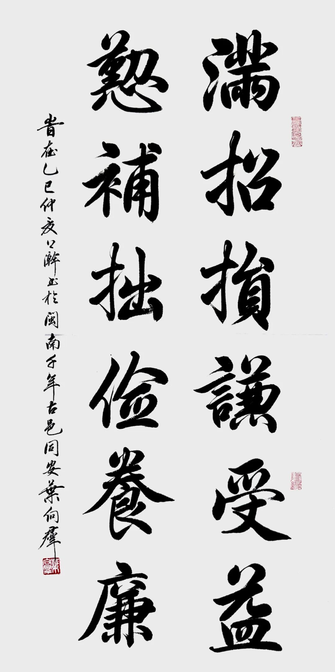 在书法艺术的研习过程中,叶向群得恩师田英章的精心指引。田英章作为中国楷书领域的泰斗级人物,其技法精湛绝伦、章法严谨缜密,对叶向群的书法技艺提升发挥至关重要的效用。在恩师的教导下他的楷书技法与章法相当纯正,起笔落毫之际,总有金书锦字跃然纸上,楷法严谨无欺,尽显深厚的书法功底与独特的艺术魅力。