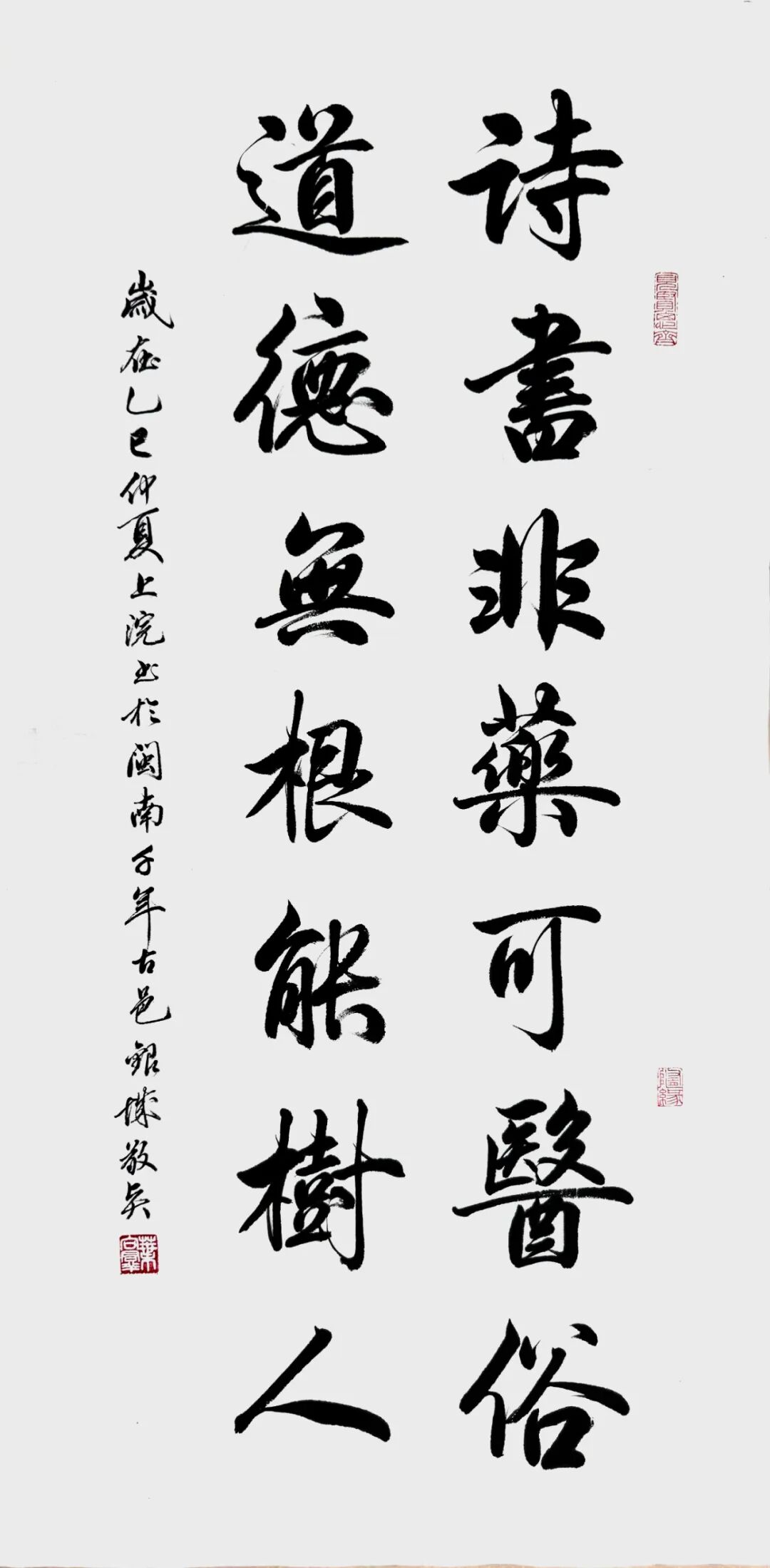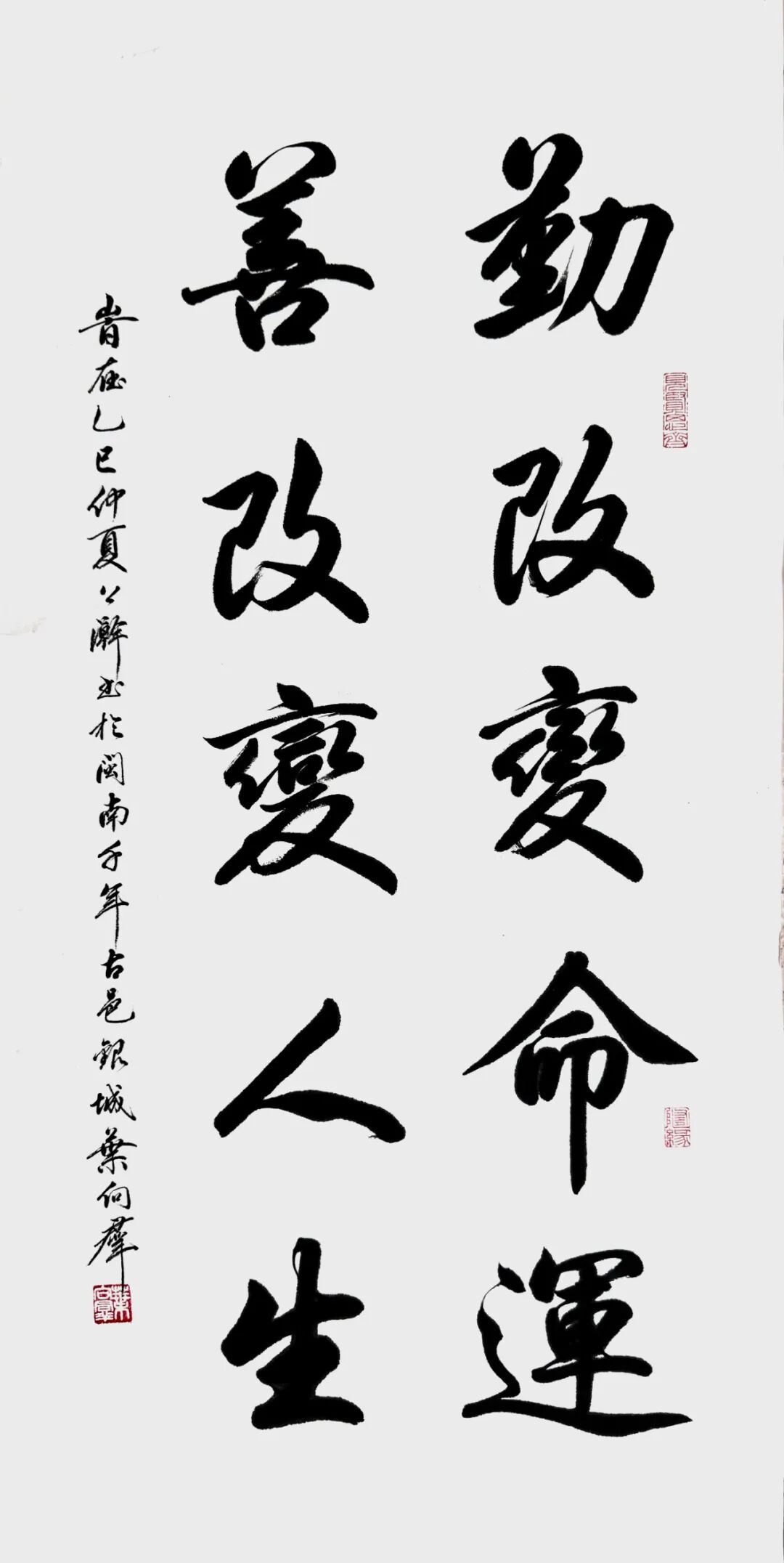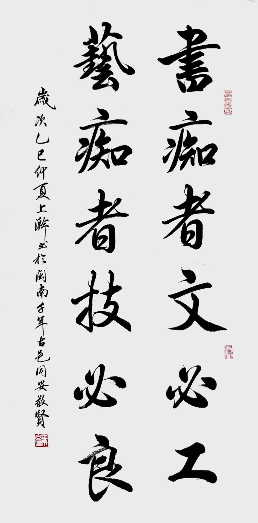 在家学的润泽下,叶向群自幼年展露出对古典文学的浓厚兴味与非凡禀赋。其诗作不但严格依循古典诗词的平仄韵律,且于主题选取上追求崇高与深邃,字里行间流溢深厚的文化底蕴与人文精神,使其跻身当代古典诗歌创作领域的代表人物行列。此种对古典文学的深厚积淀,无疑为他的书法艺术的修养筑牢了坚实根基,令其书法作品于字里行间散发浓郁的文人气息与书卷韵致。